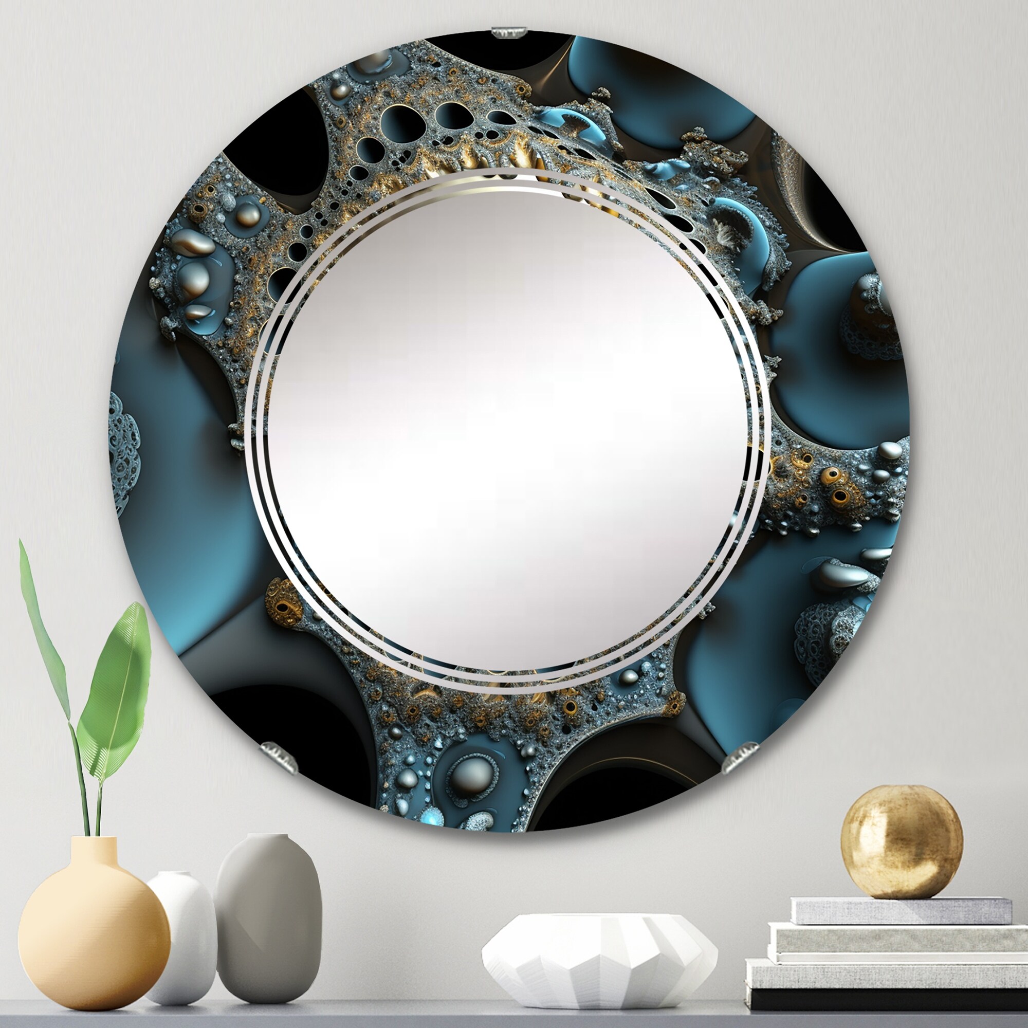 Designart 'Turquoise Fractal Emanation VII' Printed Modern Geometric Wall Mirror