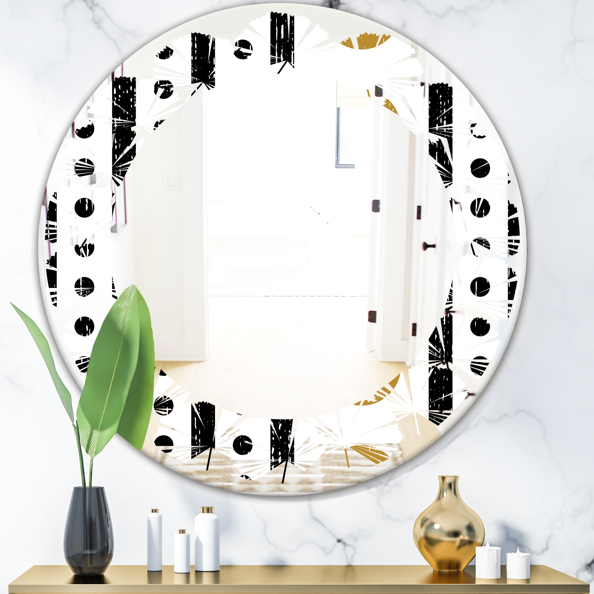 Designart 'Retro Geometrical Abstract Minimal Pattern VII' Printed Modern Round or Oval Wall Mirror - Leaves