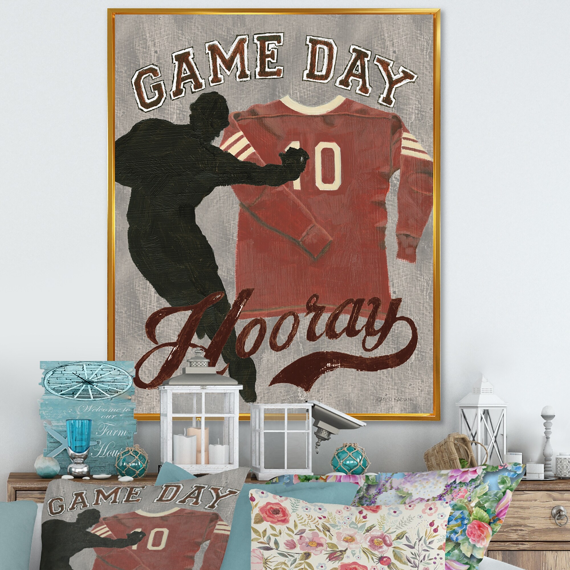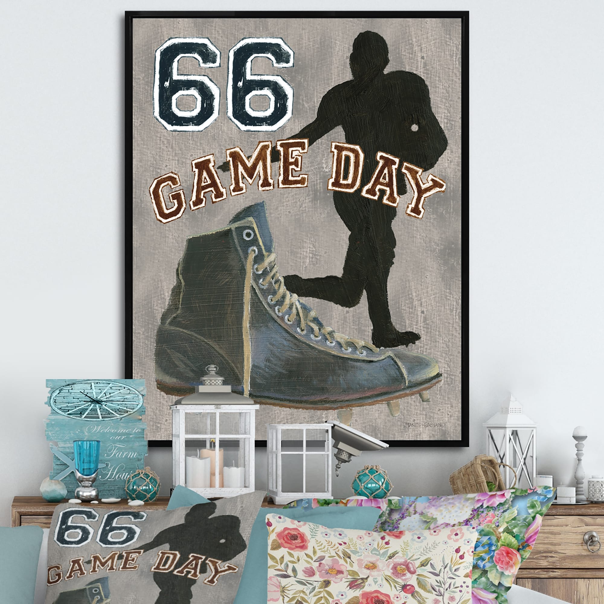 Designart "football Game Day IV" Vintage Sport Framed Canvas - Black