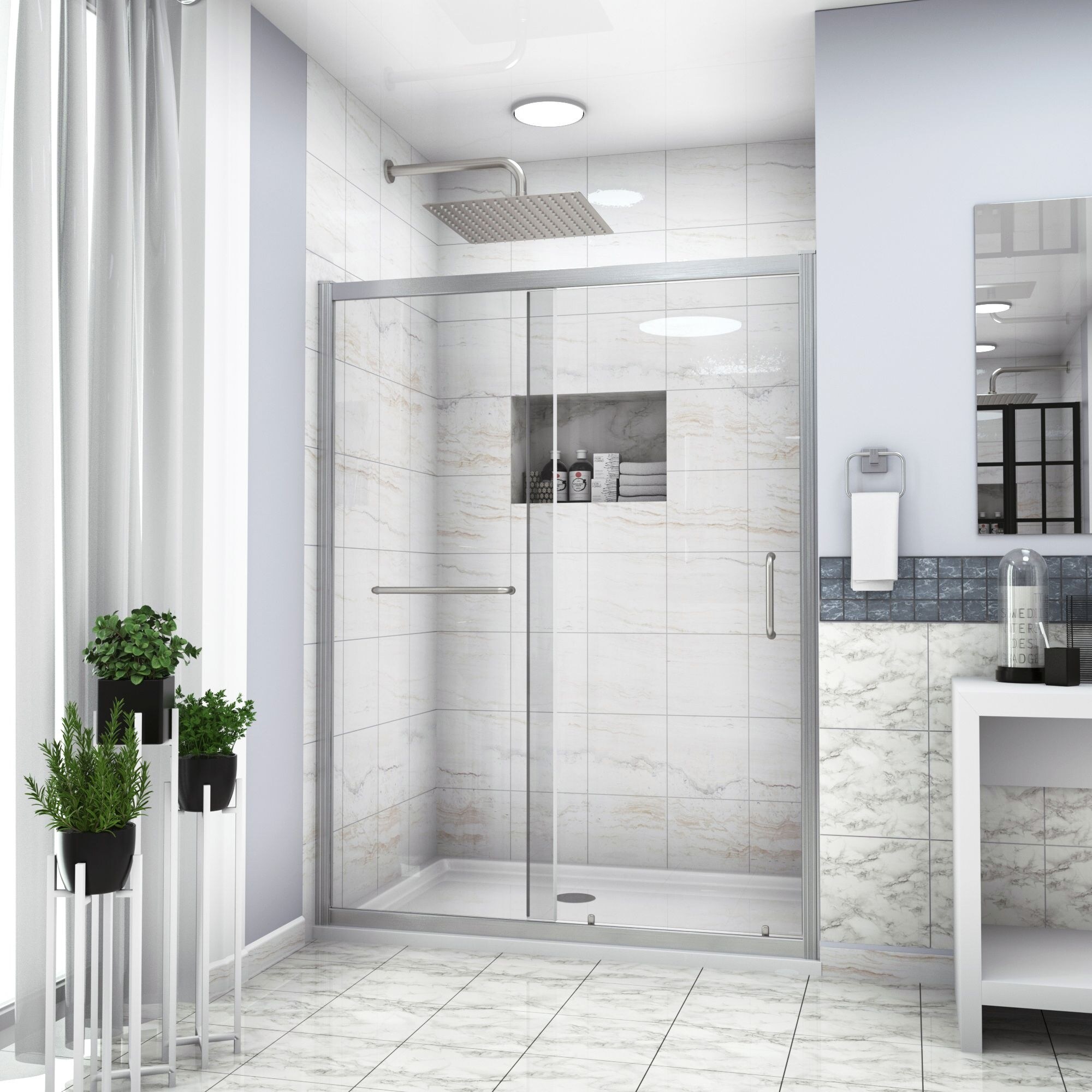 Kichae Shower Door 60" W x 72"H Semi-Frameless Single Sliding Shower Enclosure