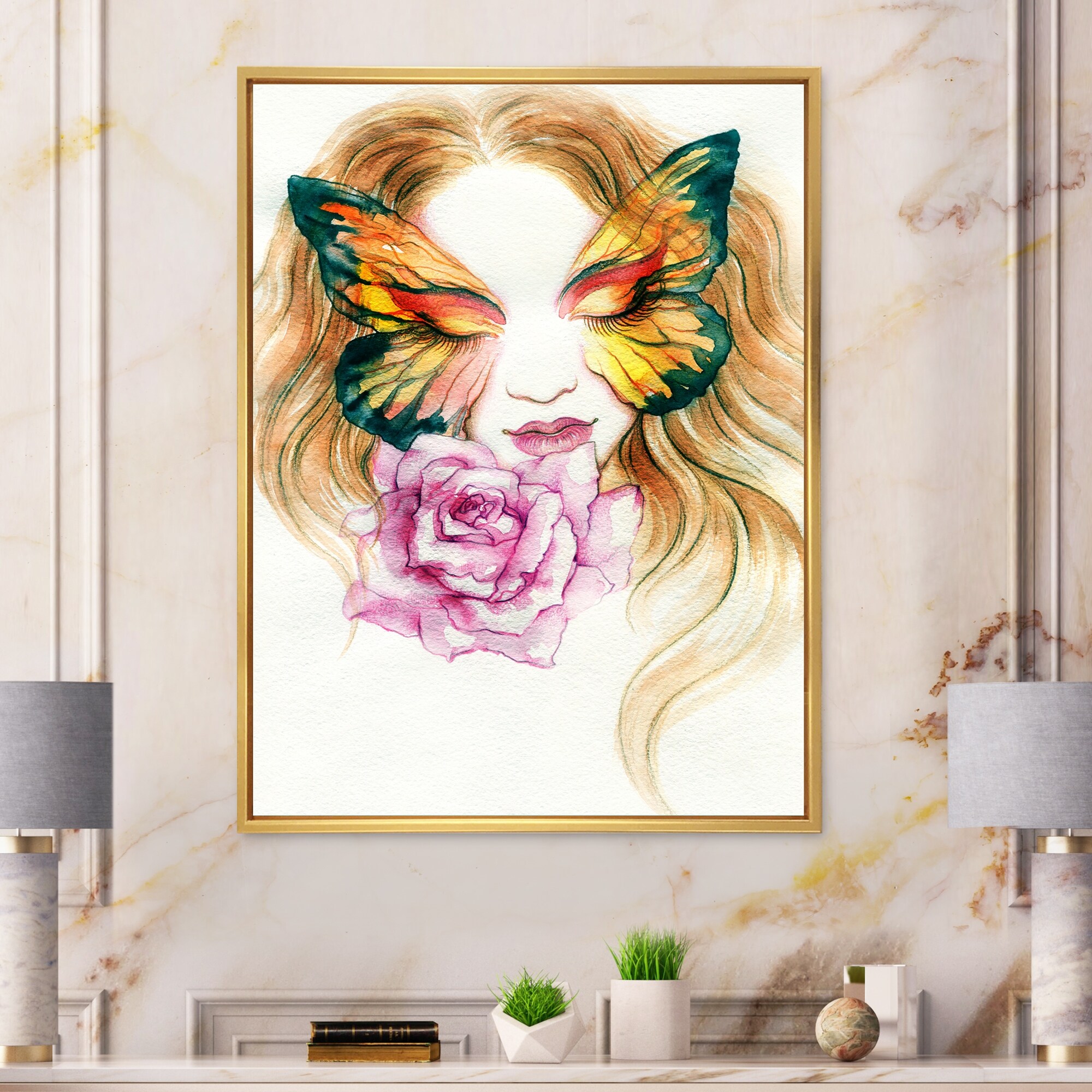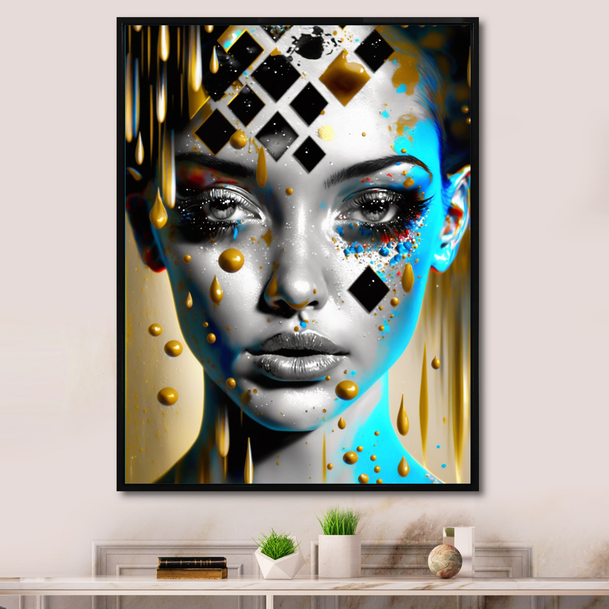Designart "Colorful Fashionista Woman Portrait IV" Glam Framed Canvas Wall Art