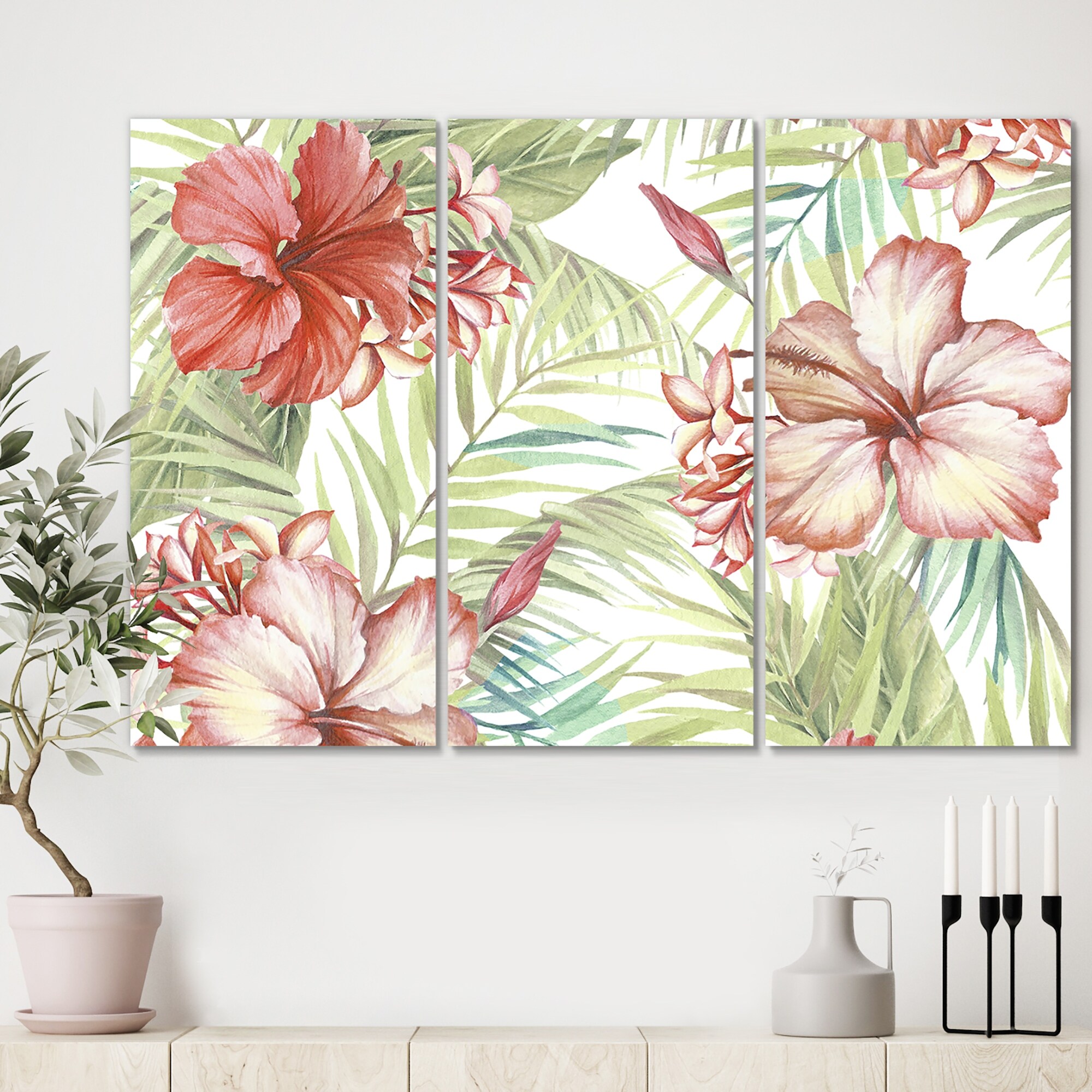Designart "Hibiscus Paradise" Premium Cottage Canvas Wall Art - 36x28 - 3 Panels