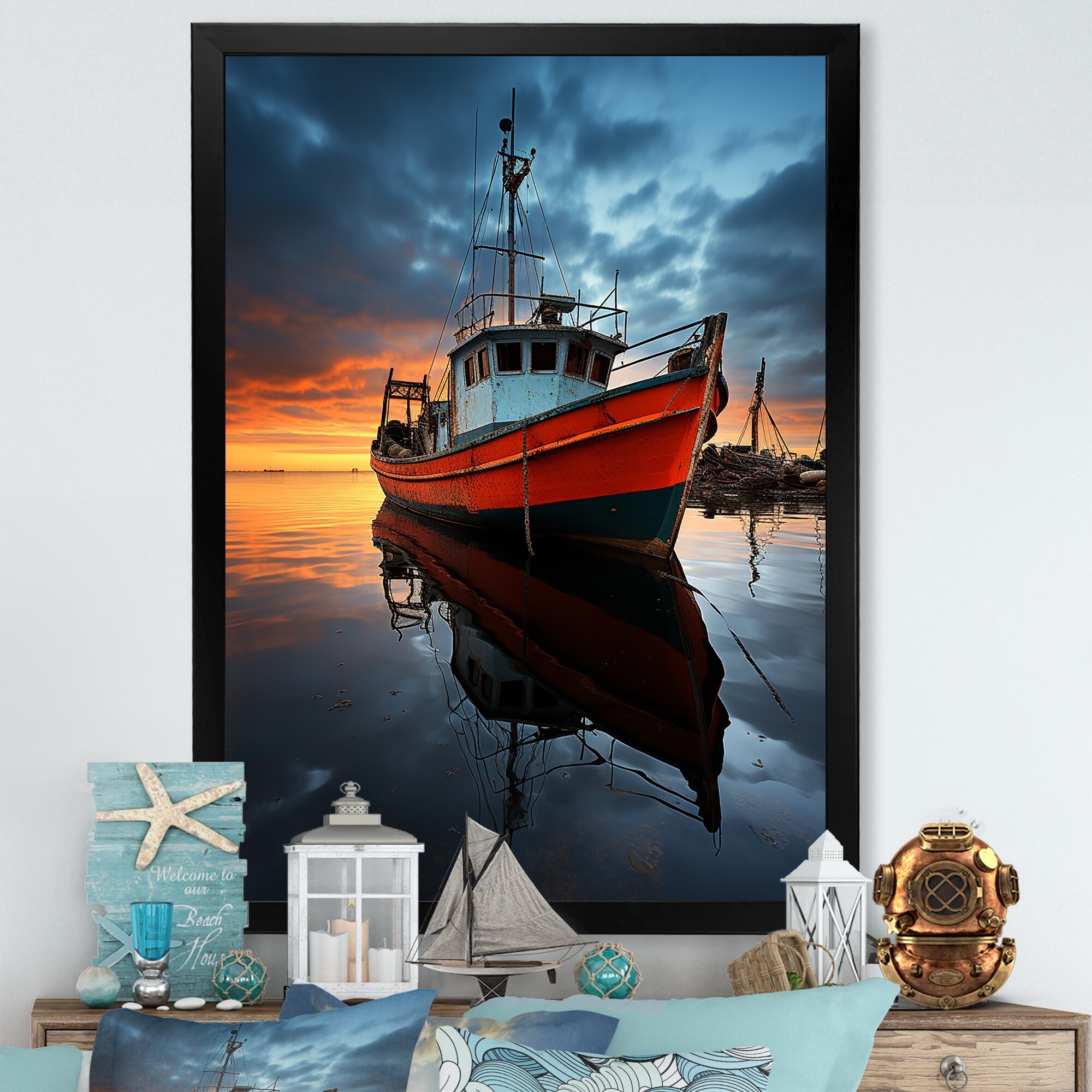Designart "Port Harbor Silhouette II" Port Landscape Framed Canvas Wall Art