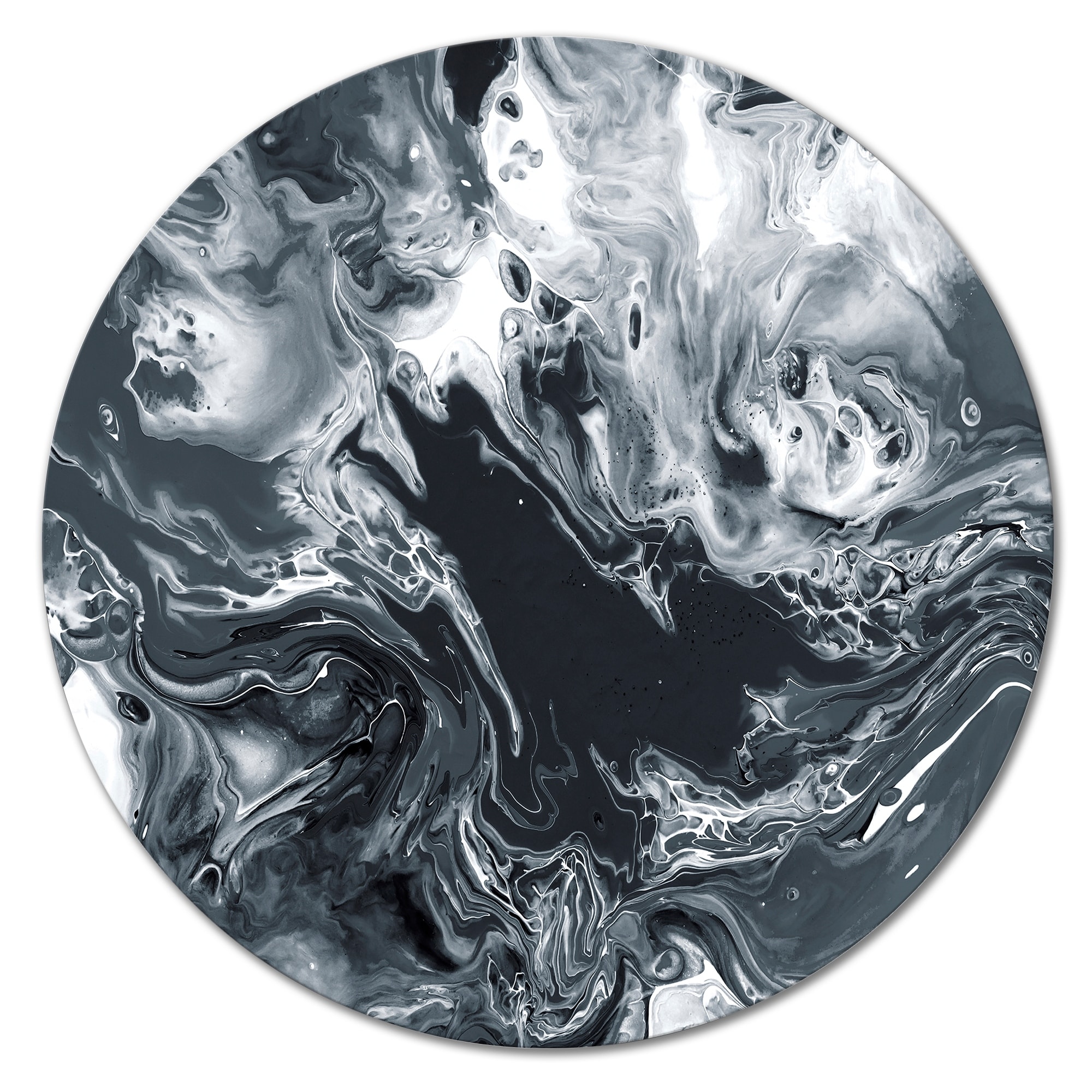 Designart 'Black And White Creative Liquid Art' Modern Metal Circle Wall Art