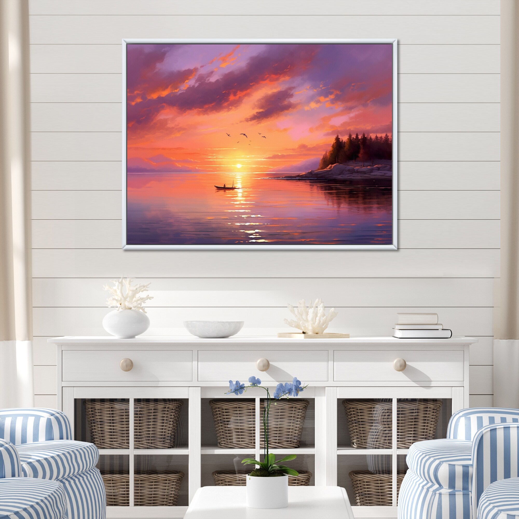 Designart "Beach At Dusk" Coastal Framed Canvas Wall Art