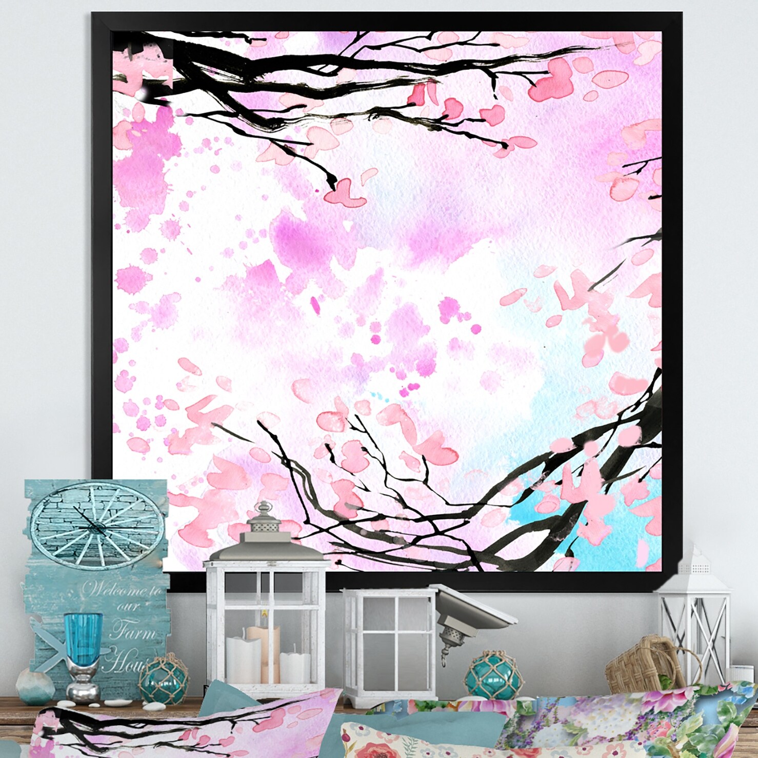 Designart "Pink Cherry Blossom Branch" Traditional Framed Wall Art