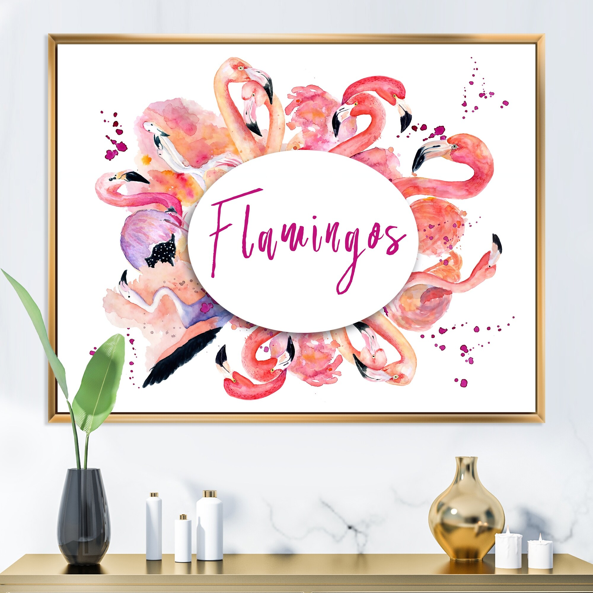 Designart "Round Frame With Pink Flamingo" Patterned Framed Canvas Wall Art Print