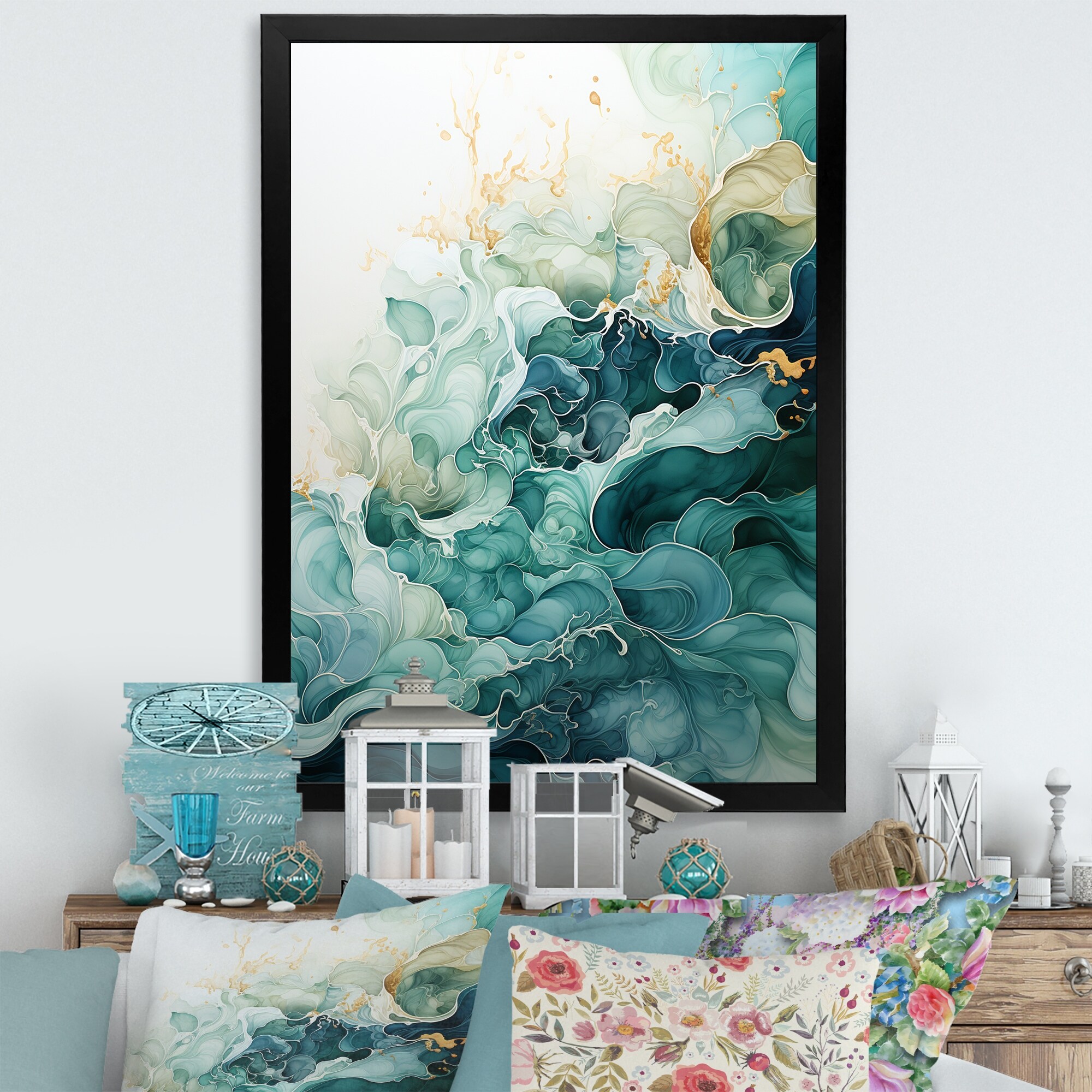 Designart "Teal Gold Minimalism Serenity in Motion" Minimalism Framed Wall Art Prints