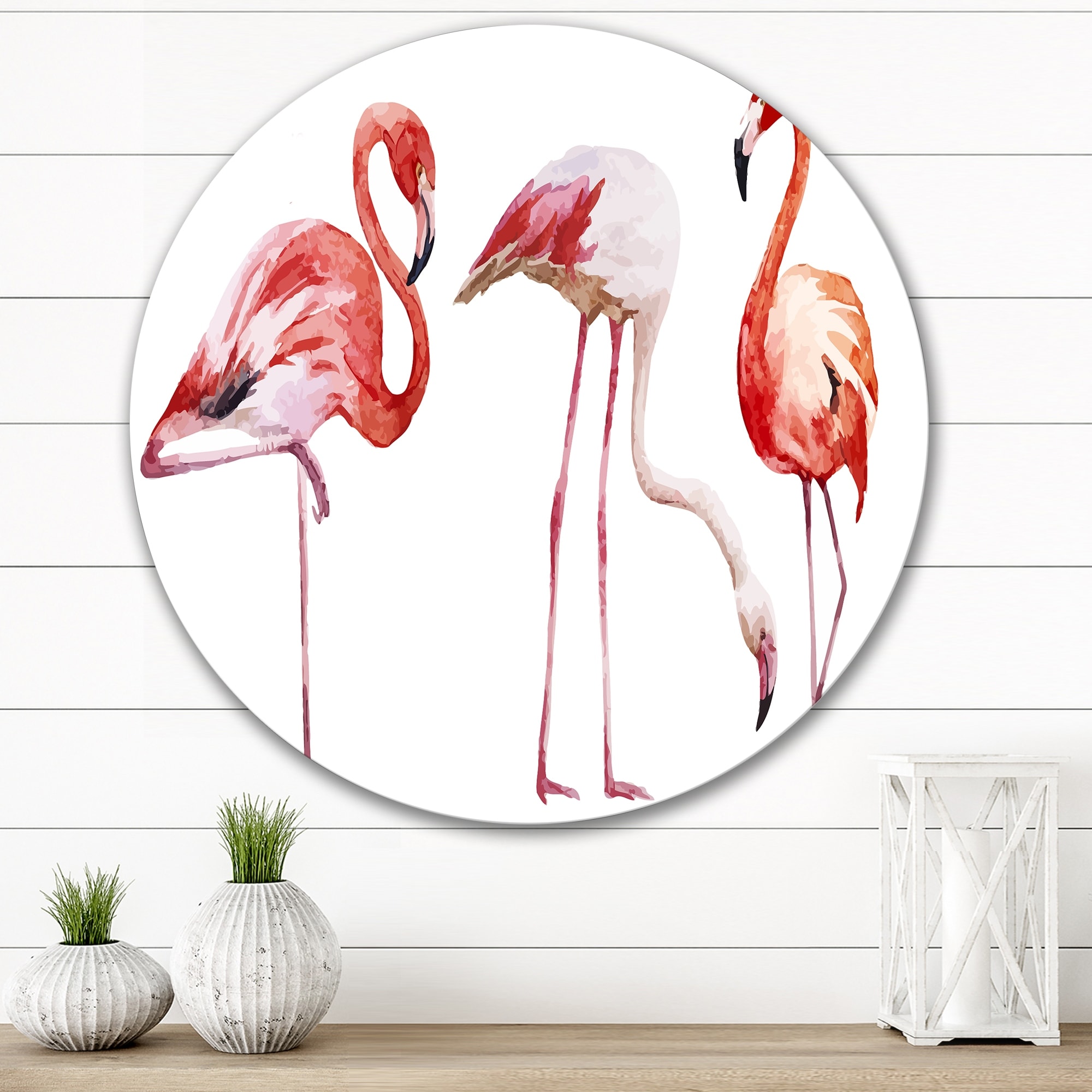Designart 'Two Pink Flamingos on White' Traditional Metal Circle Wall Art