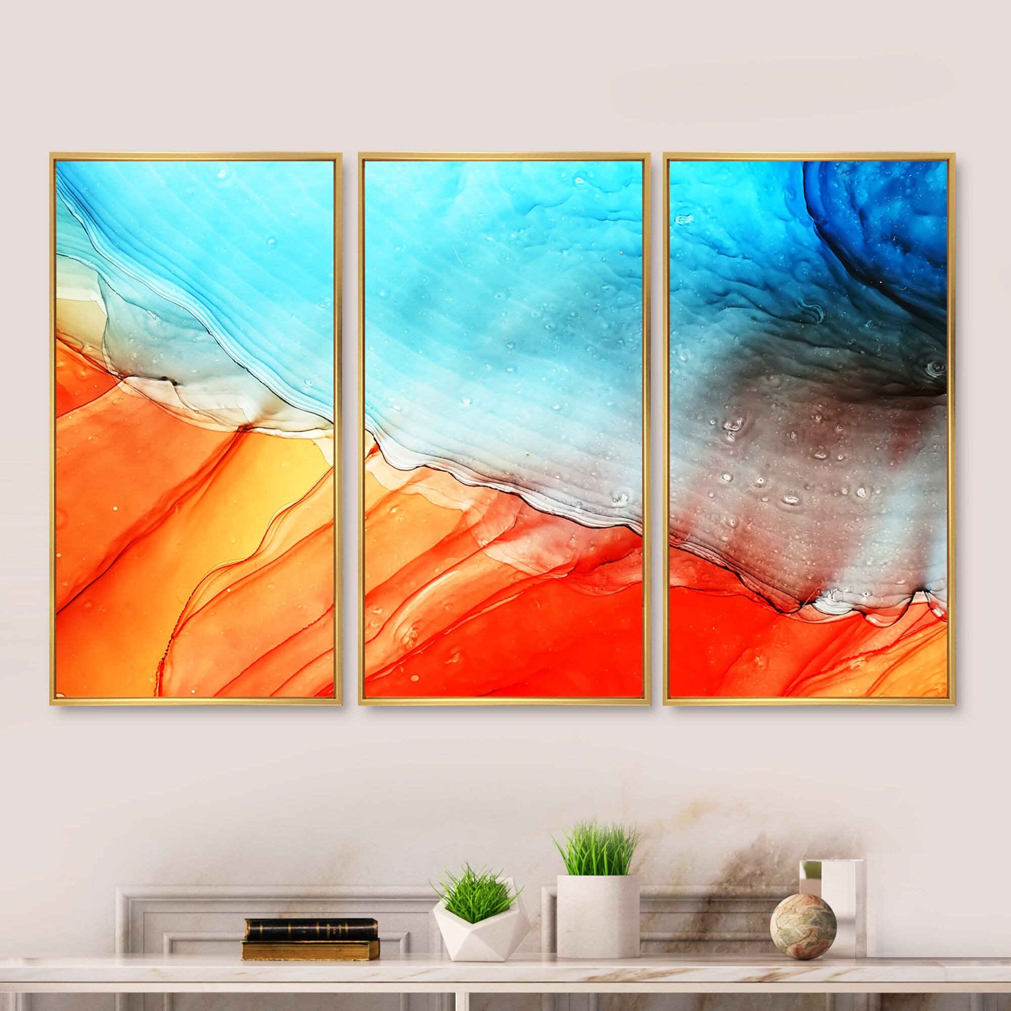 Designart "Oil On Canvas Textured Composition VI" Modern & Contemporary Framed Wall Art Set of 3 - 4 Colors of Frames