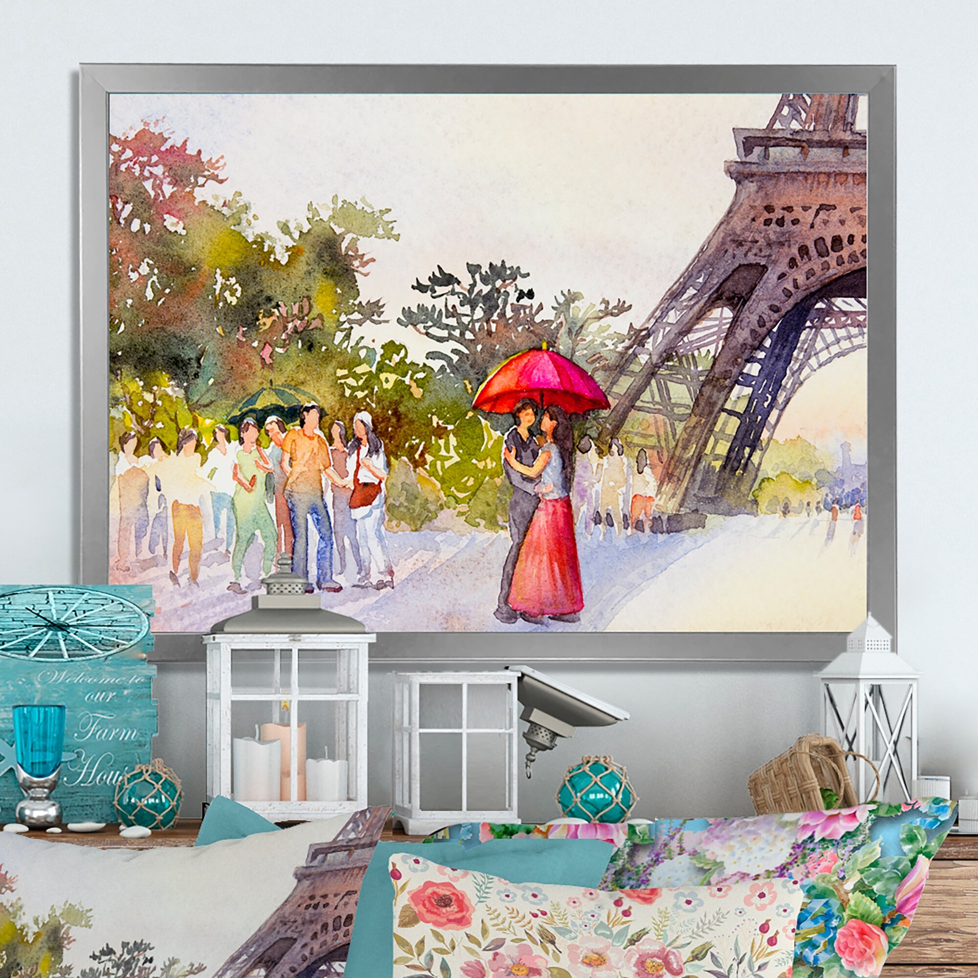 Designart "Romantic Couple in Love in Paris VIII" French Country Framed Wall Art