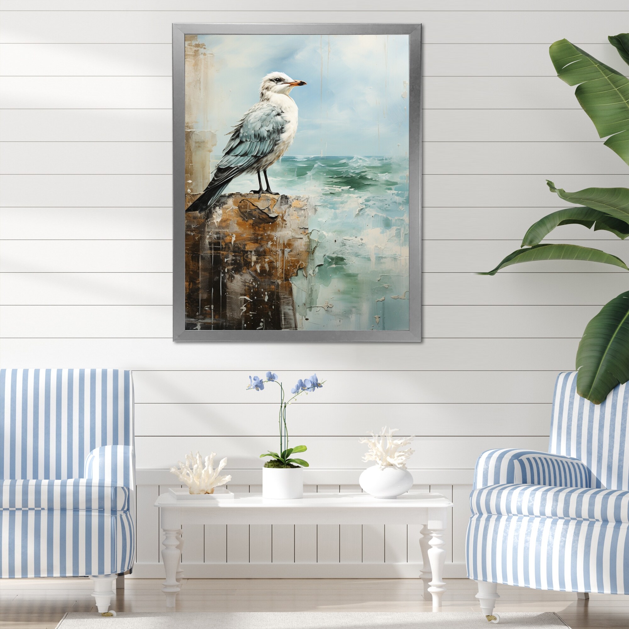 Designart "Coastal Seabird" Coastal Beach Sand Framed Canvas Wall Art