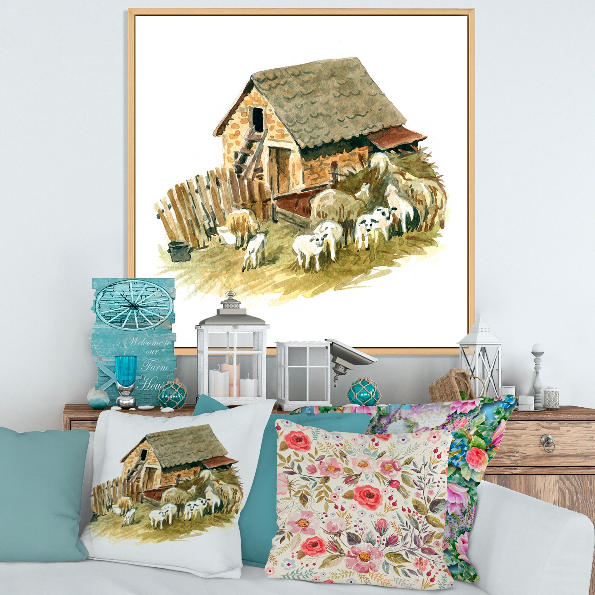 Designart "Old Farmhouse With Sheeps" Country Framed Canvas Wall Art Print