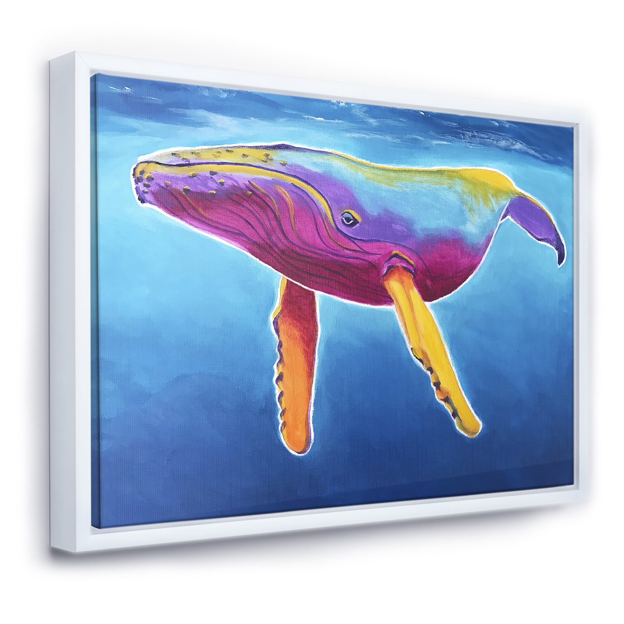 Designart "Humpback Whale - Rainbow" Nautical & Coastal Framed Canvas Wall Art