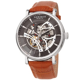 Akribos XXIV Men's Automatic Skeletal Brown Leather Strap Watch