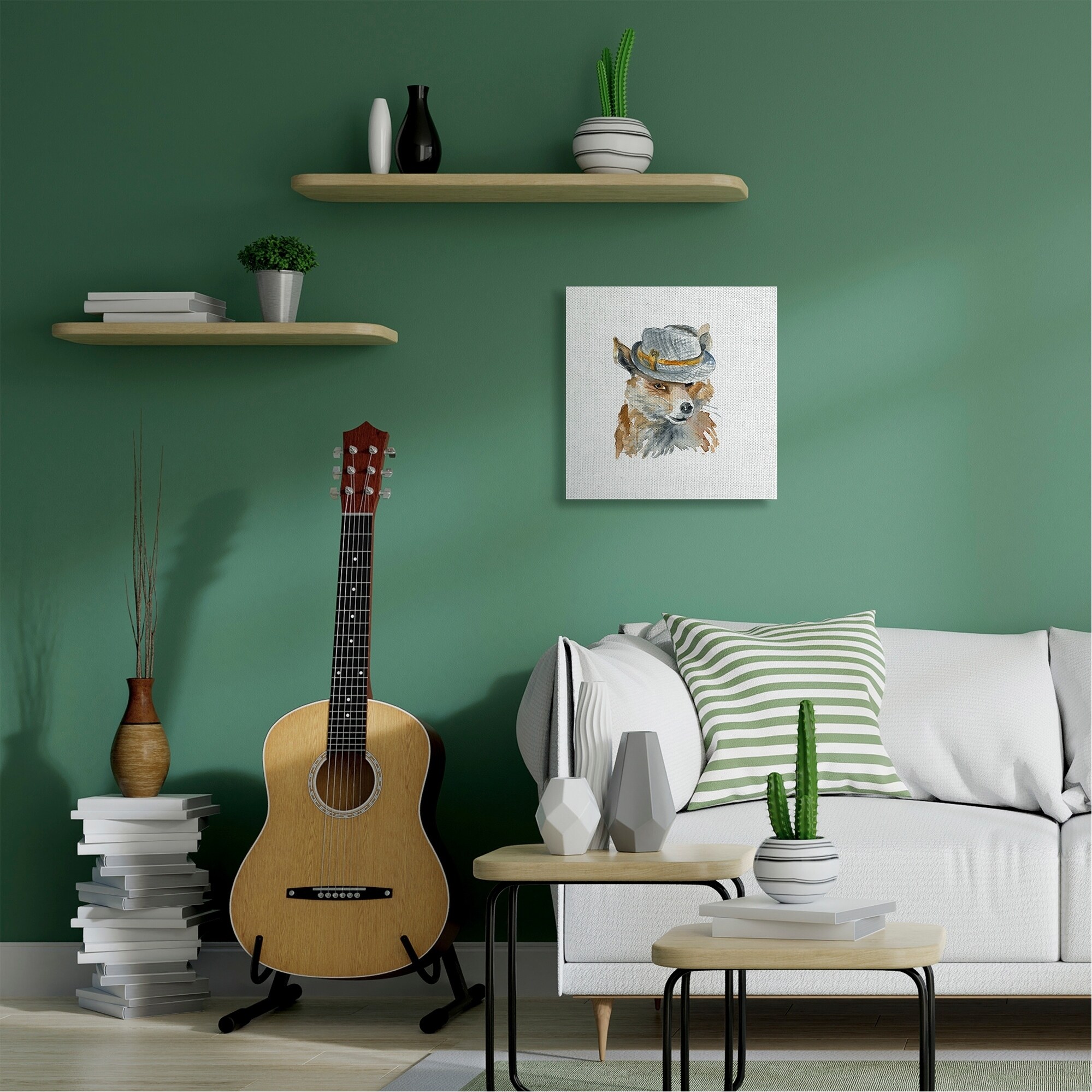 Stupell Funny Hat Fashion Fox Animal Watercolor Painting,17x17, Proudly Made in USA - Multi-Color