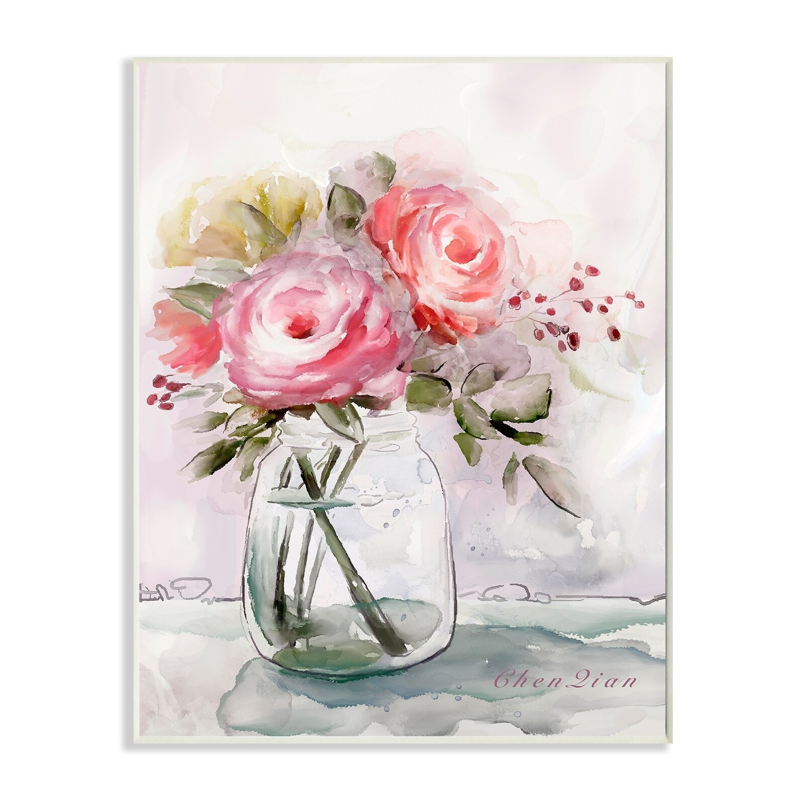 Stupell Flower Jar Pink Green Watercolor Painting Wood Wall Art