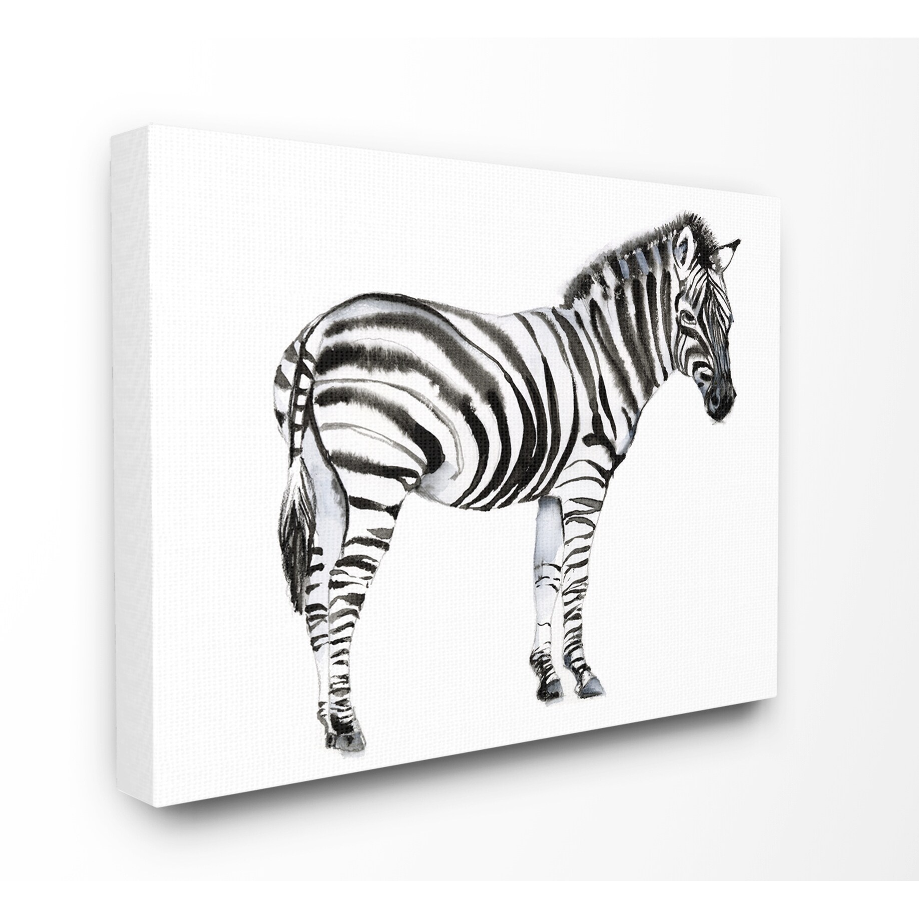 Stupell Zebra Standing Black And White Animal Watercolor Painting Canvas Wall Art