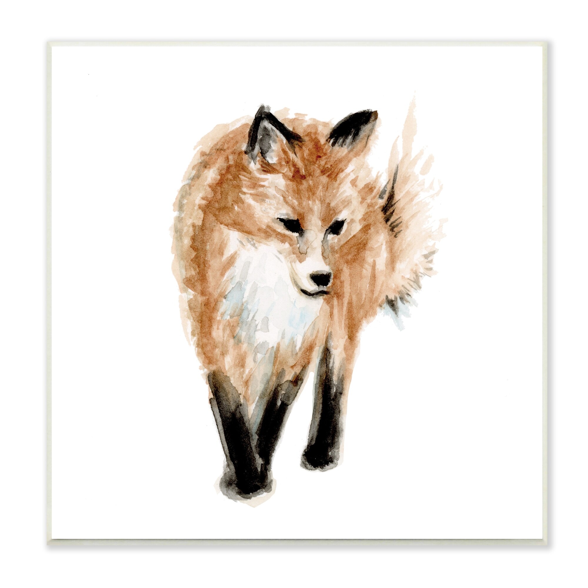 Stupell Industries Red Fox Watercolor Painting Kids' Nursery Wild Animal Wood Wall Art, 12 x 12 - Brown