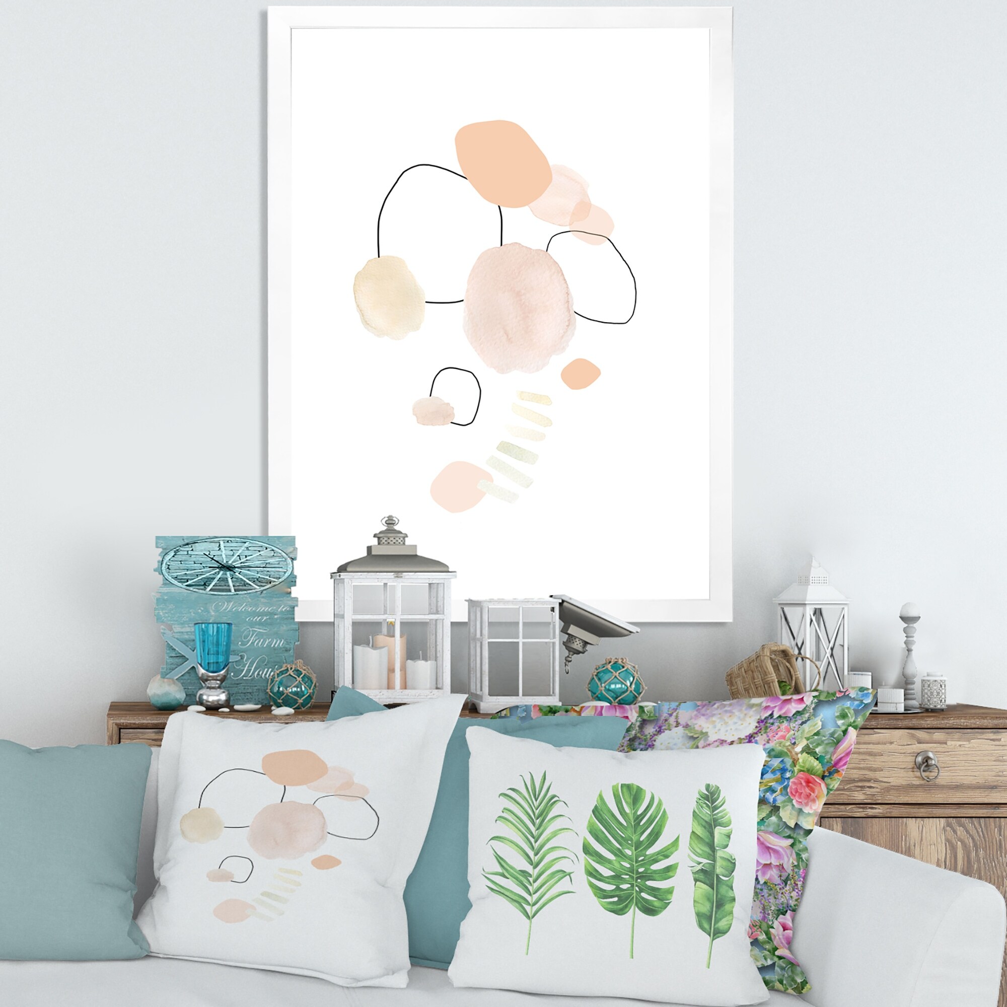 Designart "Watercolour Stains" Shabby Chic Framed Art Print