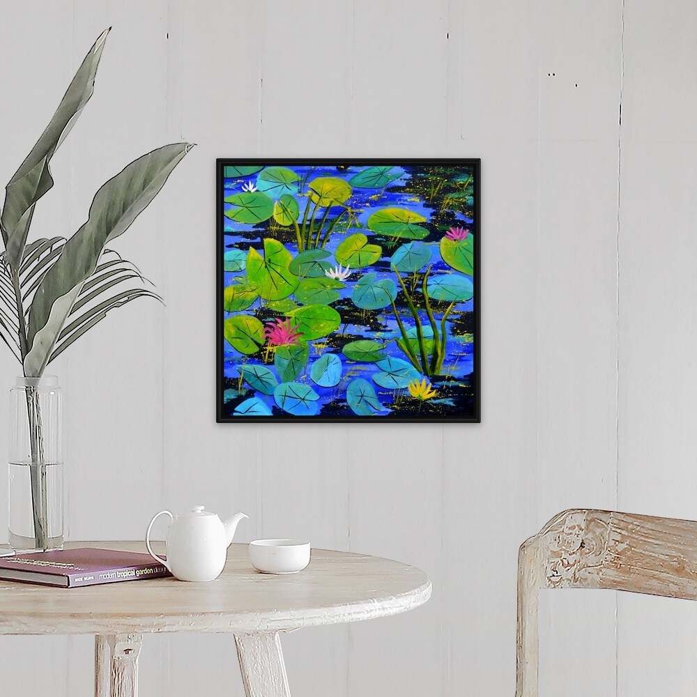 "Waterlilies 8861" Black Float Frame Canvas Art