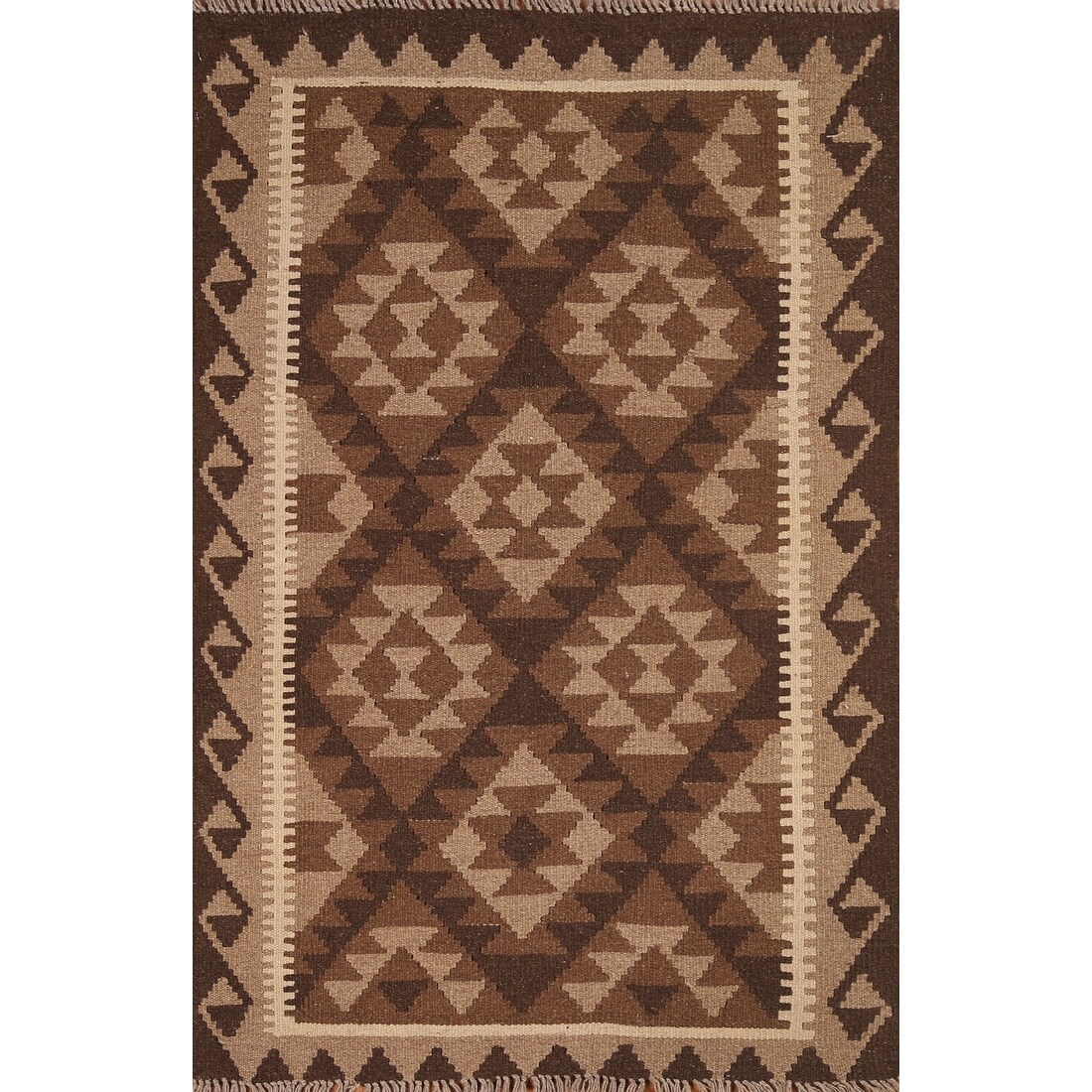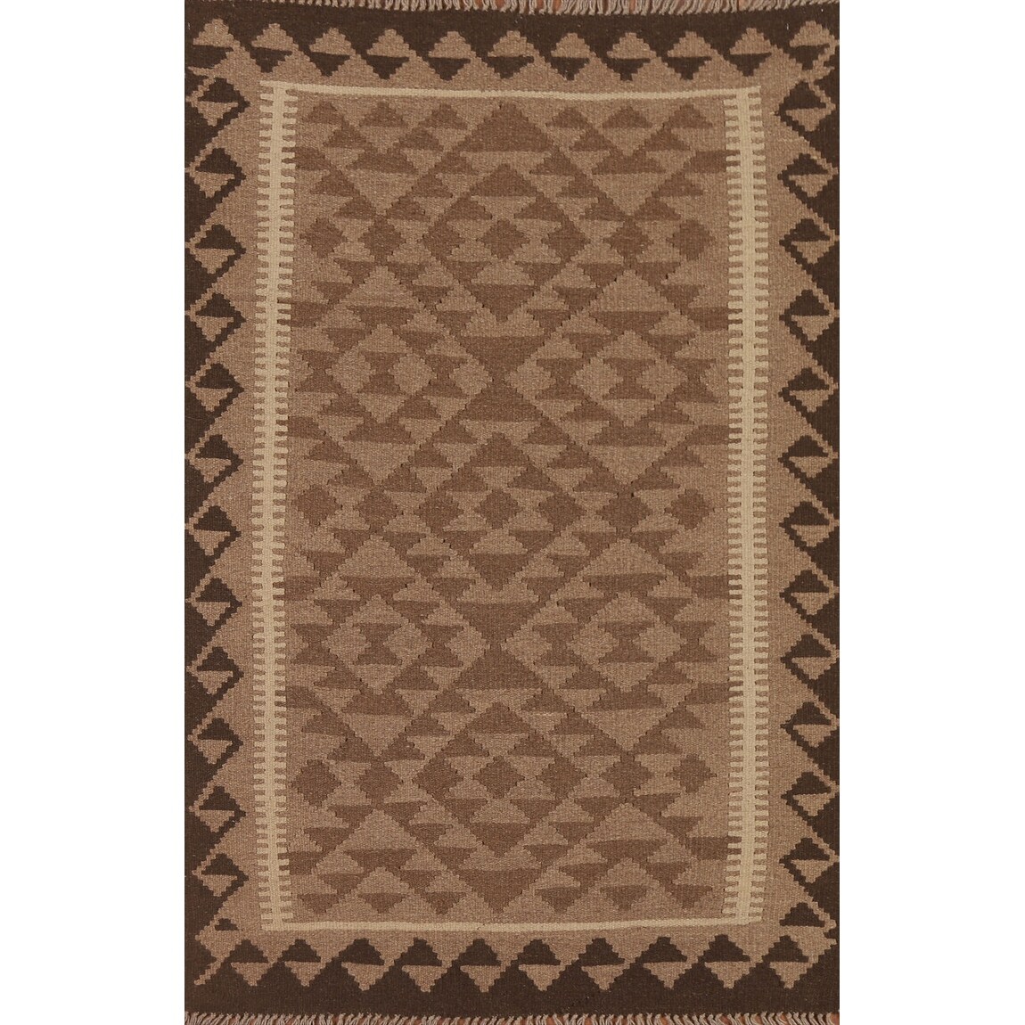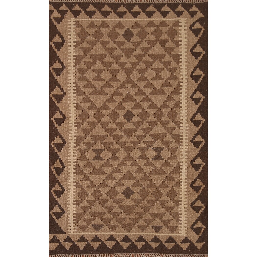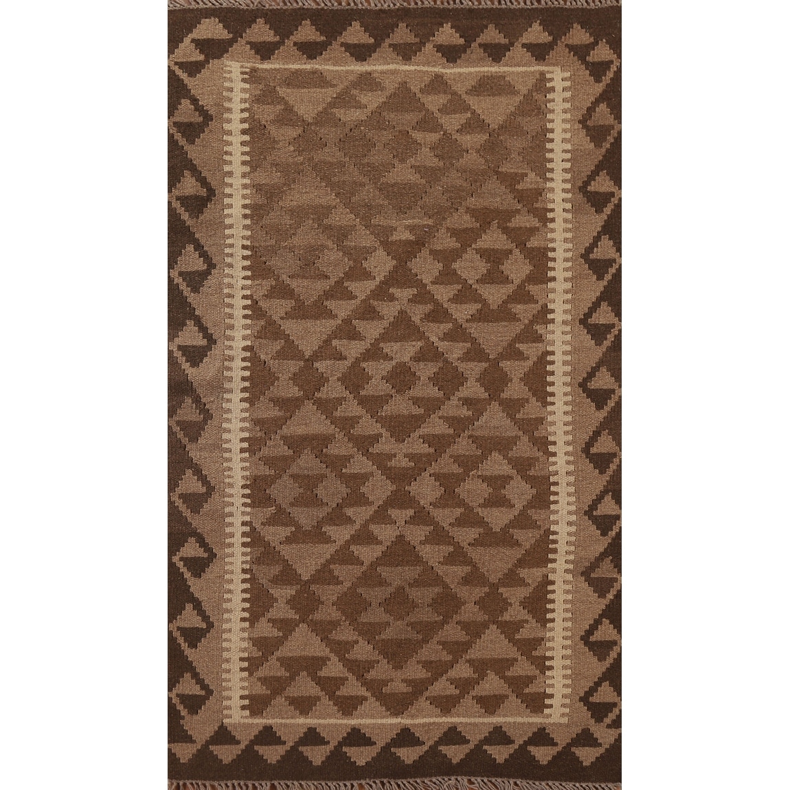 Brown Kilim Oriental Area Rug Flat-weave Wool Carpet - 3'3" x 5'2"