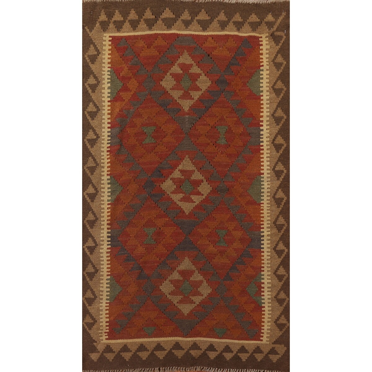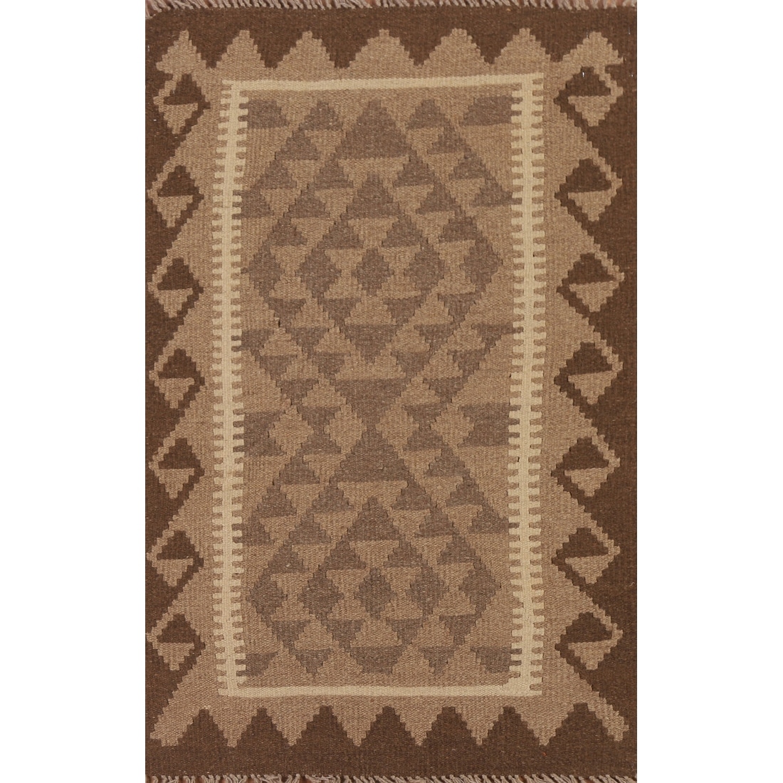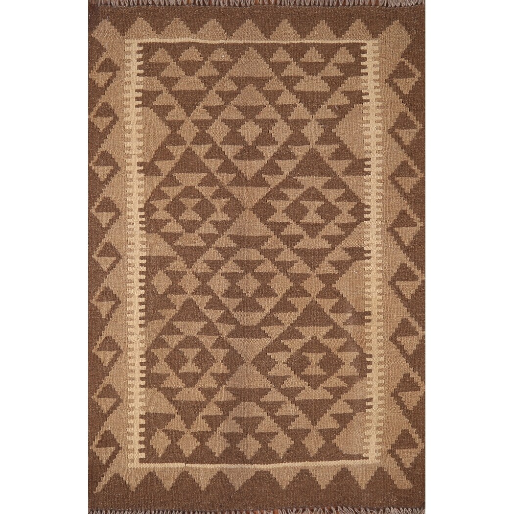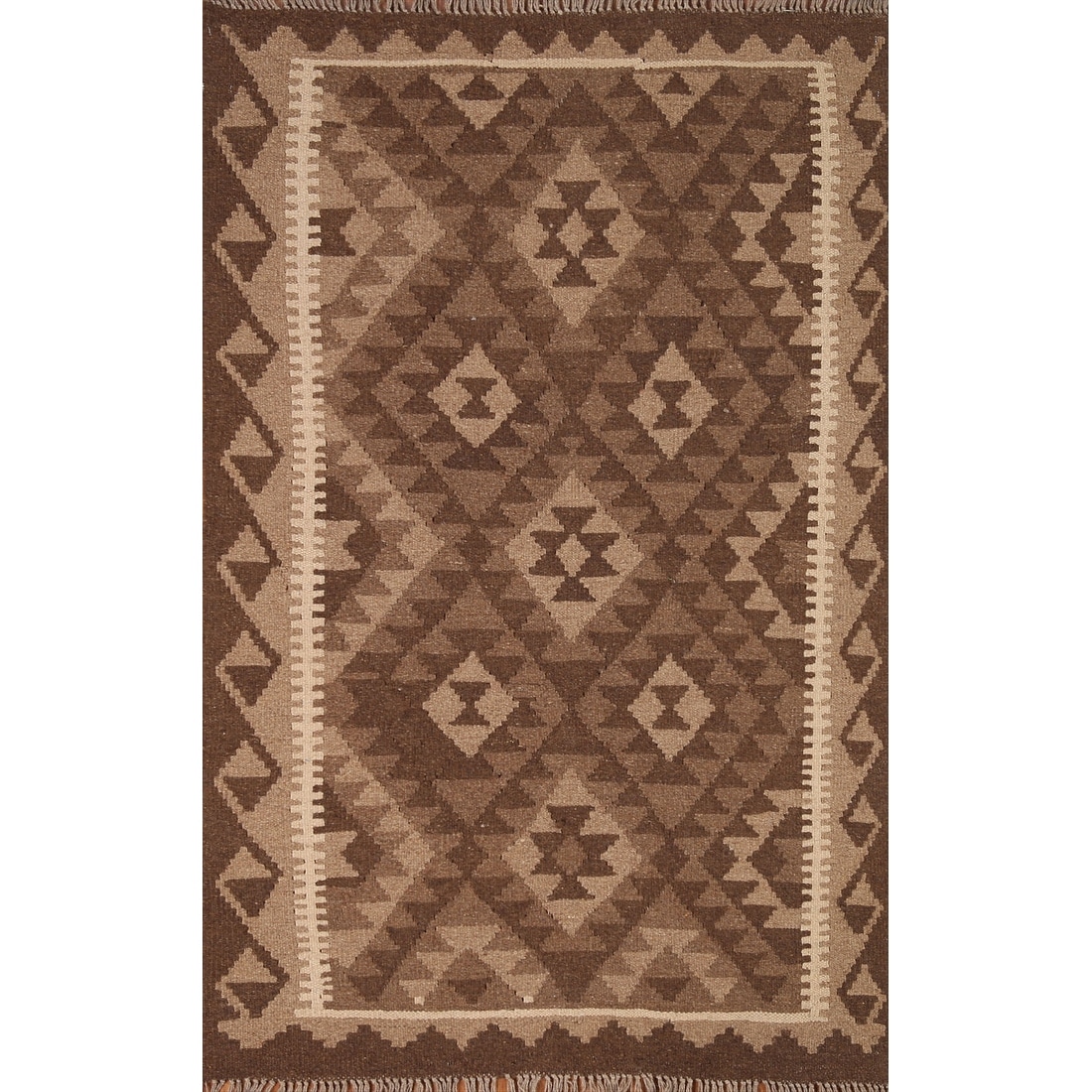 Brown Kilim Oriental Area Rug Flat-weave Wool Carpet - 3'3" x 5'2"