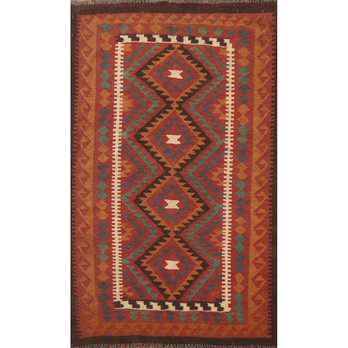 Geometric Kilim Oriental Area Rug Flat-weave Southwestern Wool Carpet - 3'3" x 5'2"