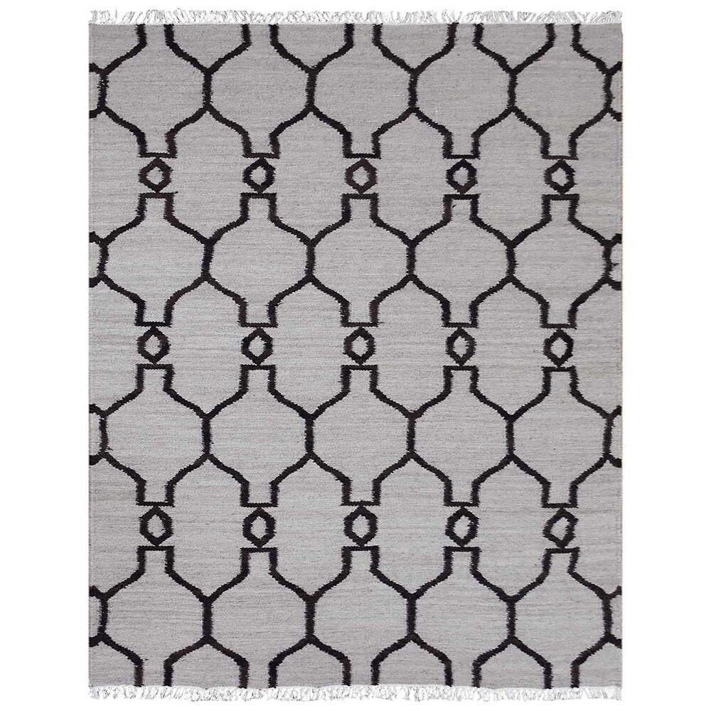 Hand Woven Wool and Viscose Gray Modern Contemporary Reversible flat weave Durry Rug