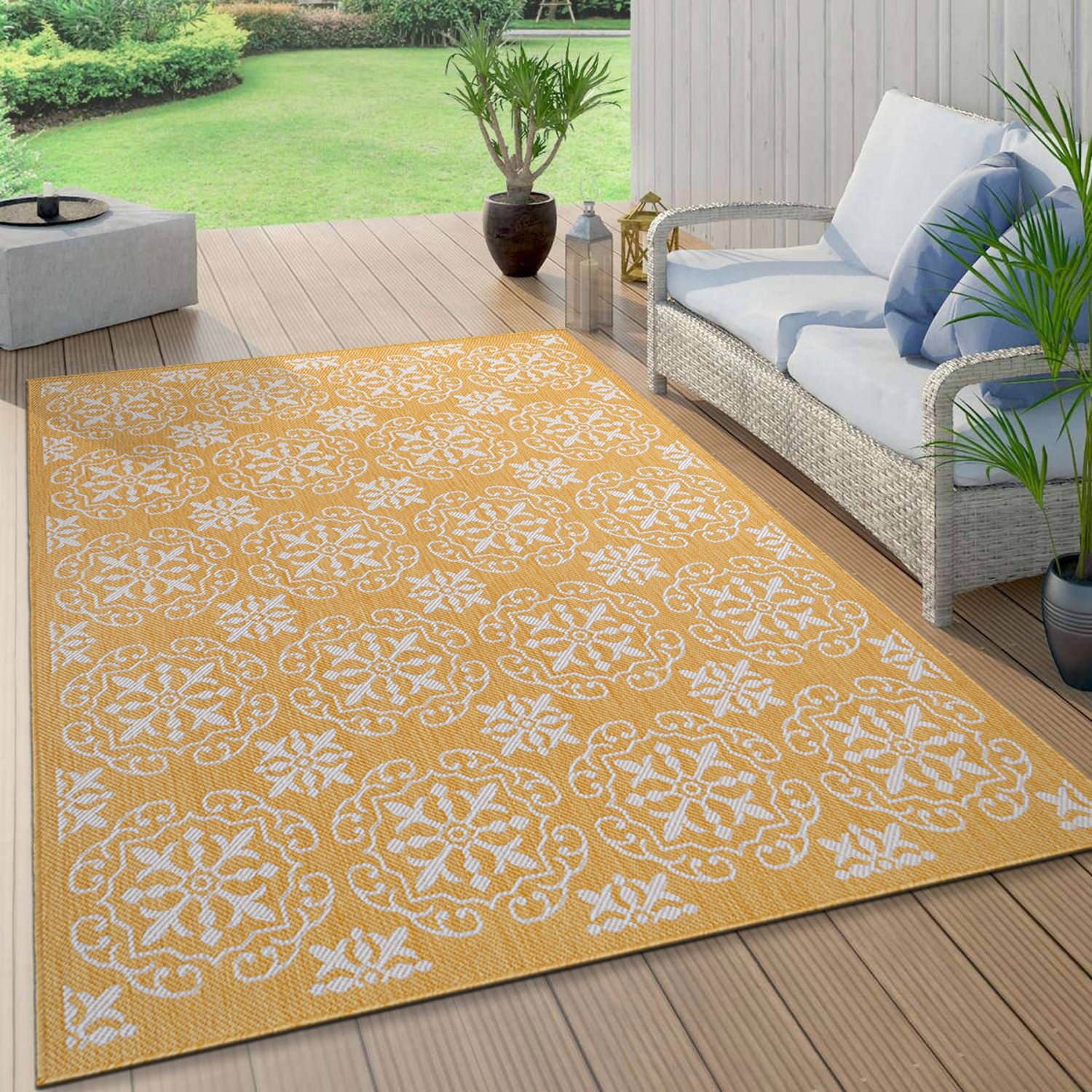 World Rug Gallery Transitional Floral Circles Textured Flat Weave Indoor/Outdoor Area Rug