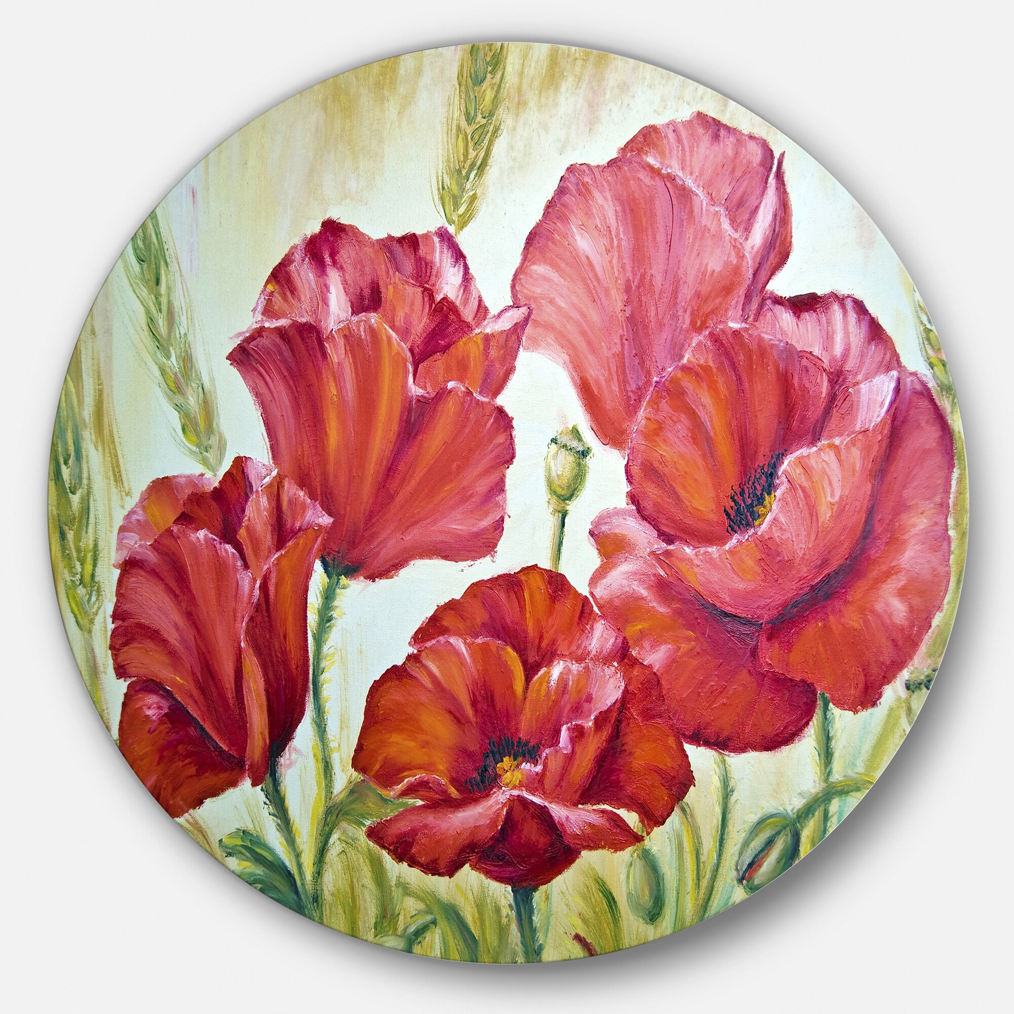 Designart 'Poppies in Wheat' Floral Round Metal Wall Art