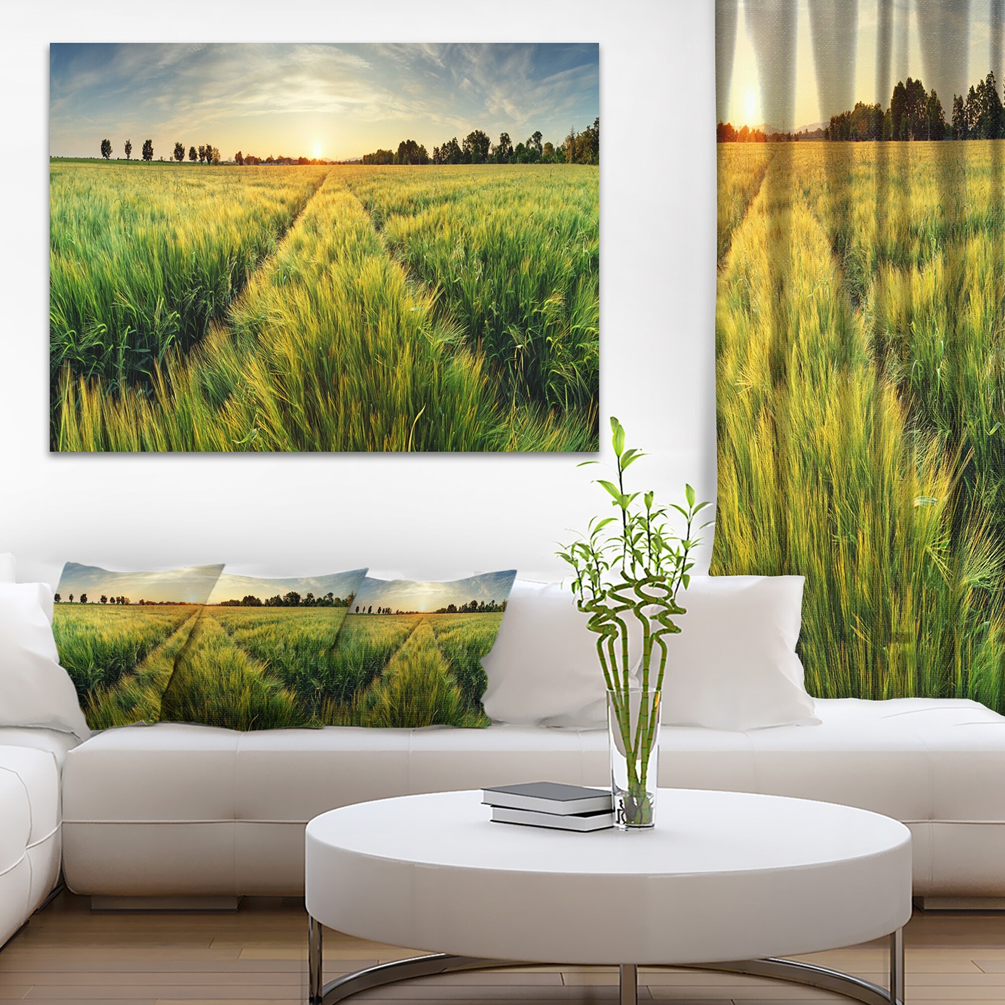 Green Wheat Field at Sunset - Landscape Large wall art canvas