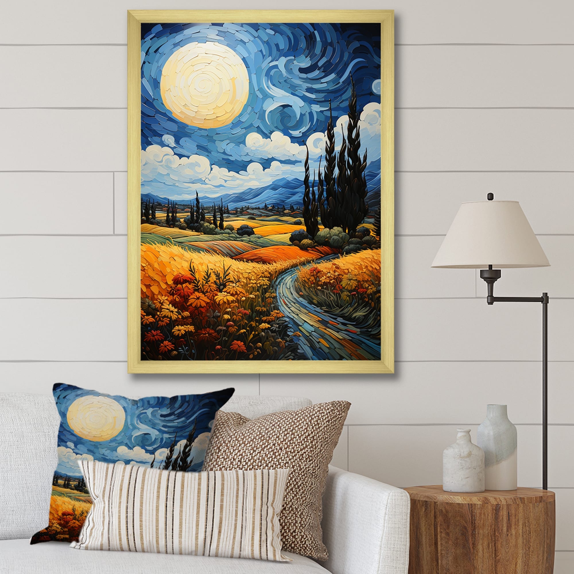 Designart "The Wheat Field With Cypresses By Vincent I" Vangogh Framed Canvas Wall Art
