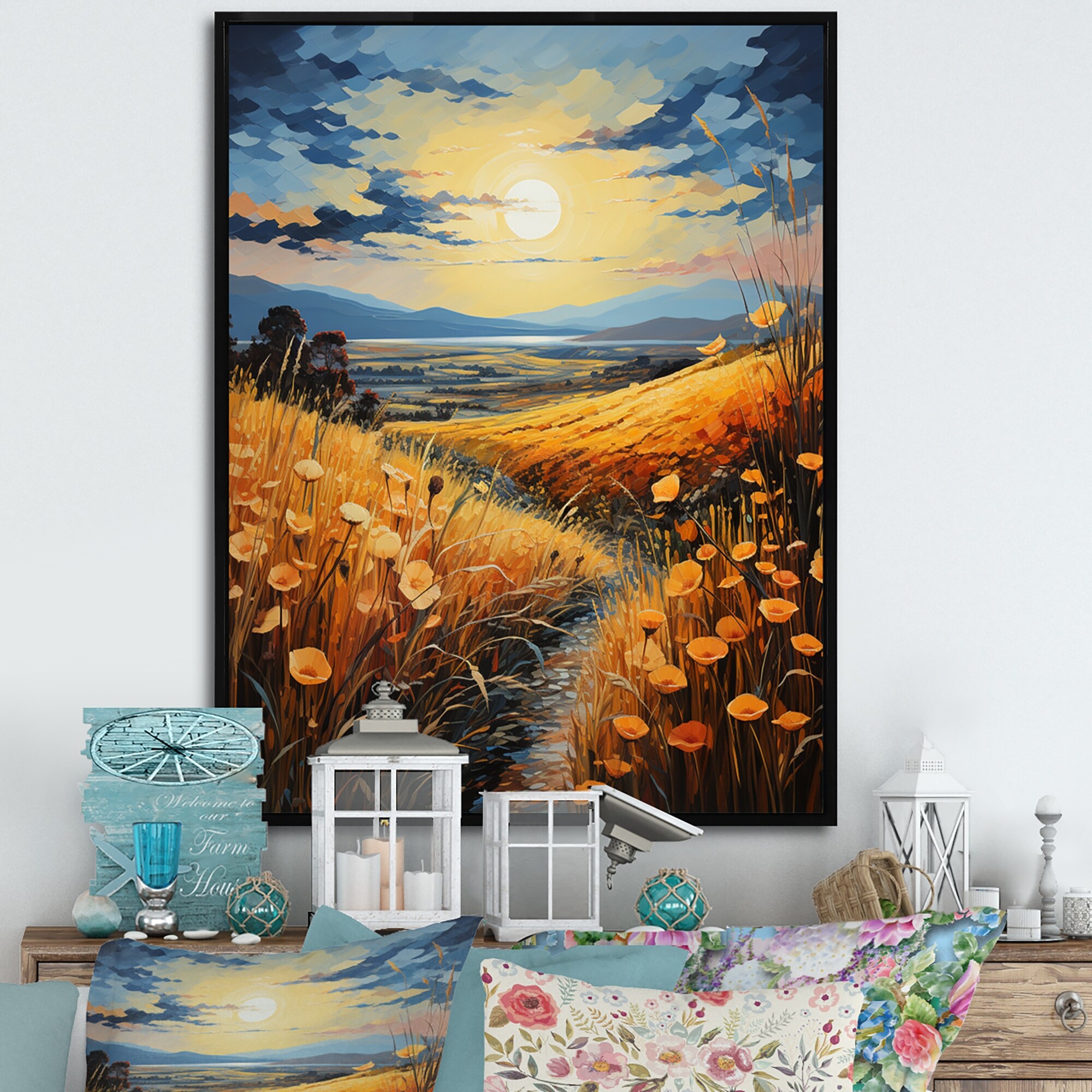 Designart "Countryside Wheat And Pastel II" Countryside Framed Wall Decor