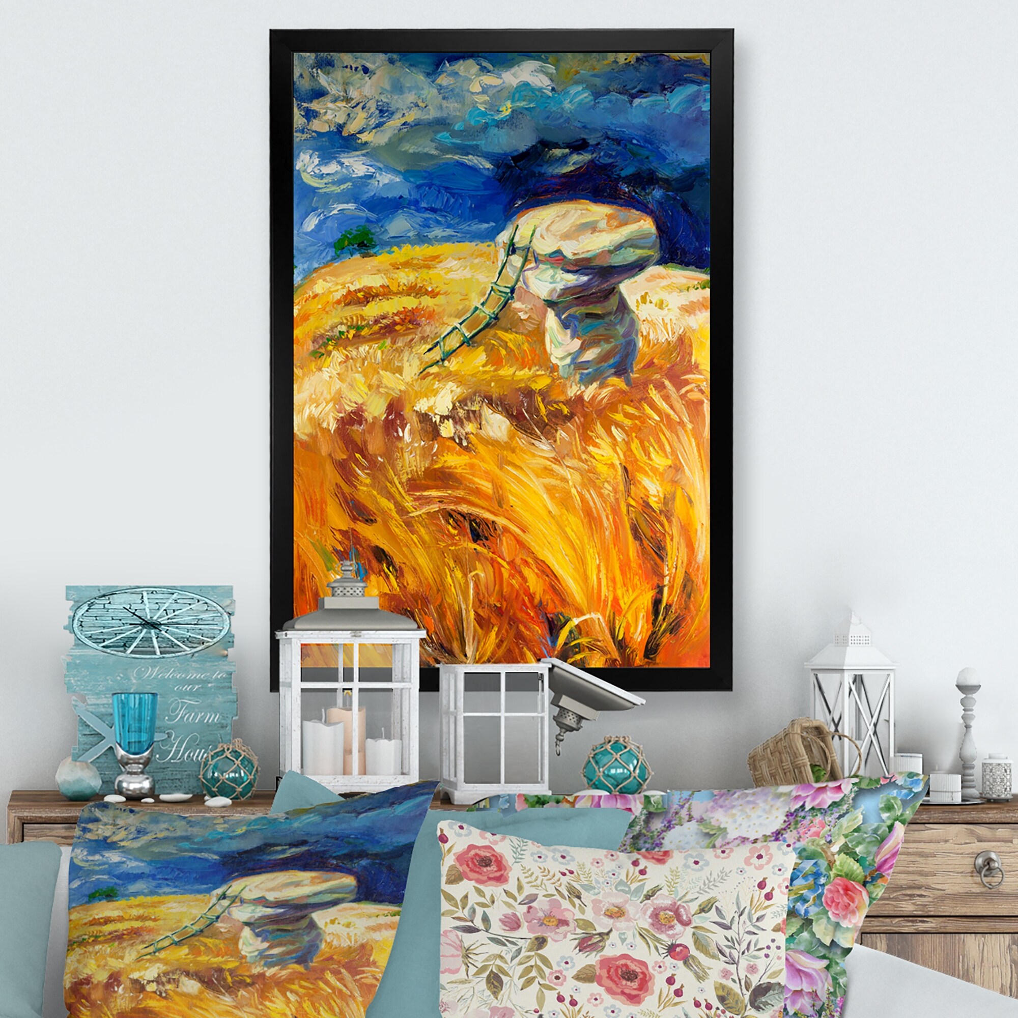Designart "Colorful Wheat Fields" Traditional Framed artwork