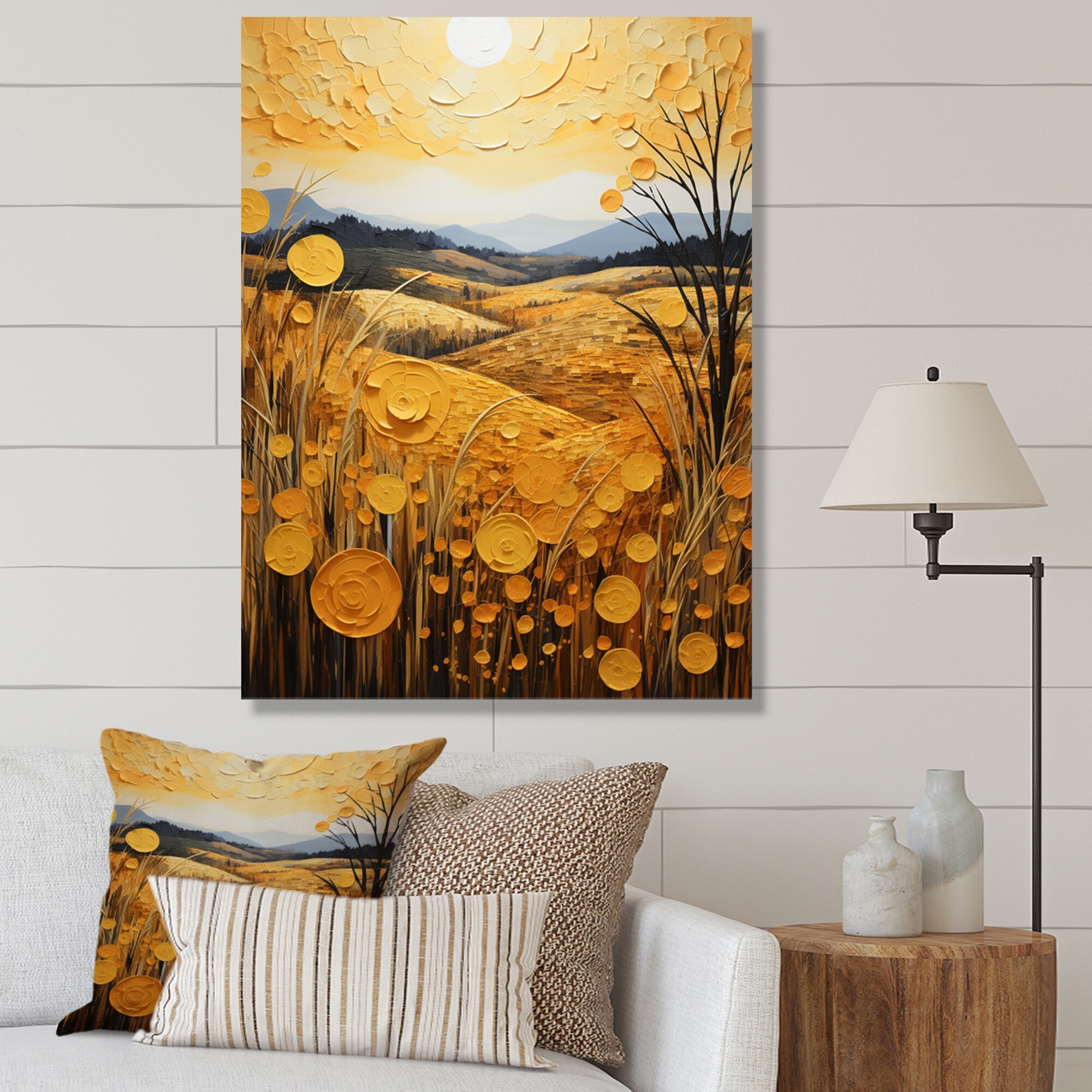 Designart "Landscape With A Field of Yellow Wheat" Traditional Canvas Wall Art Print