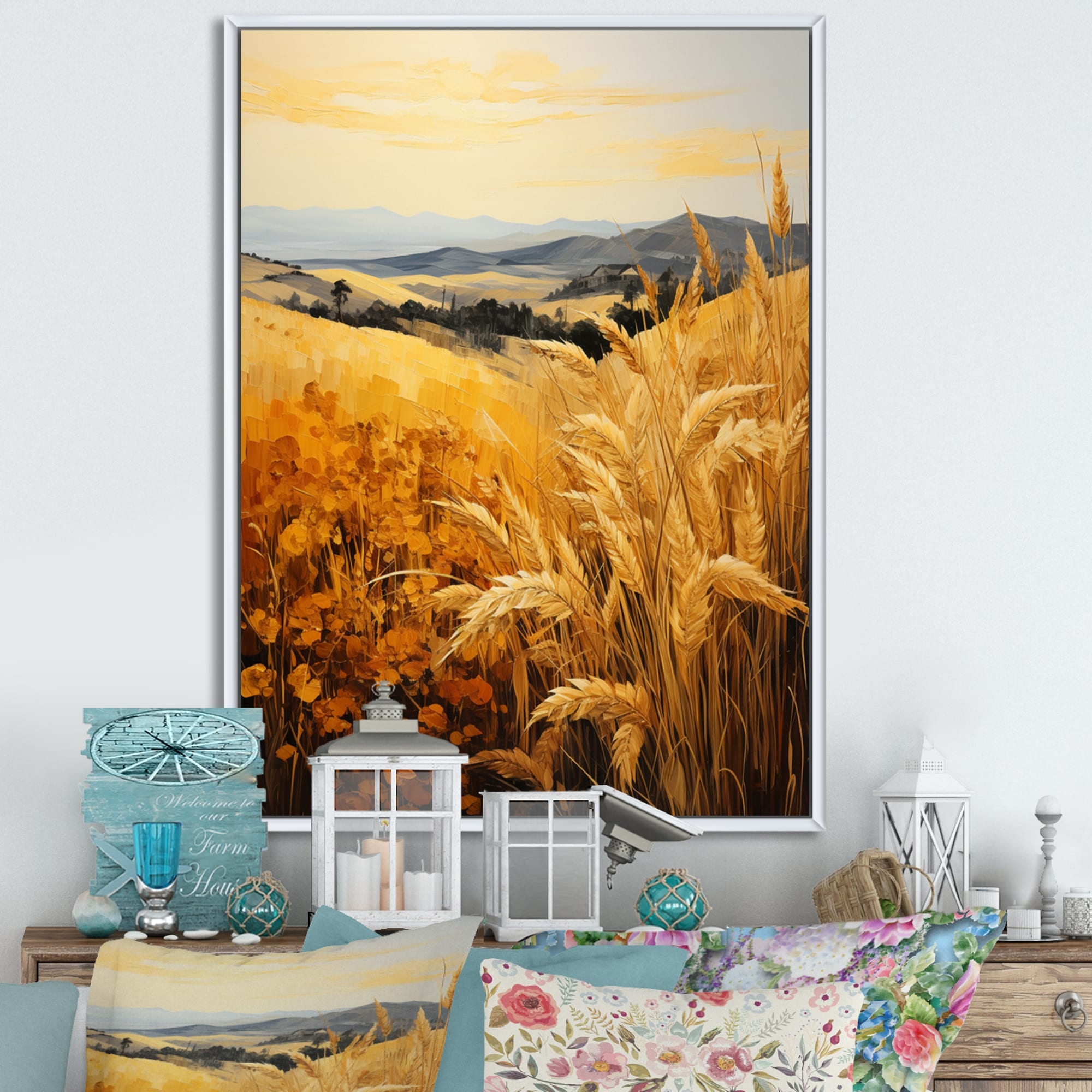 Designart "Countryside Wheat And Pastel III" Countryside Framed Wall Decor