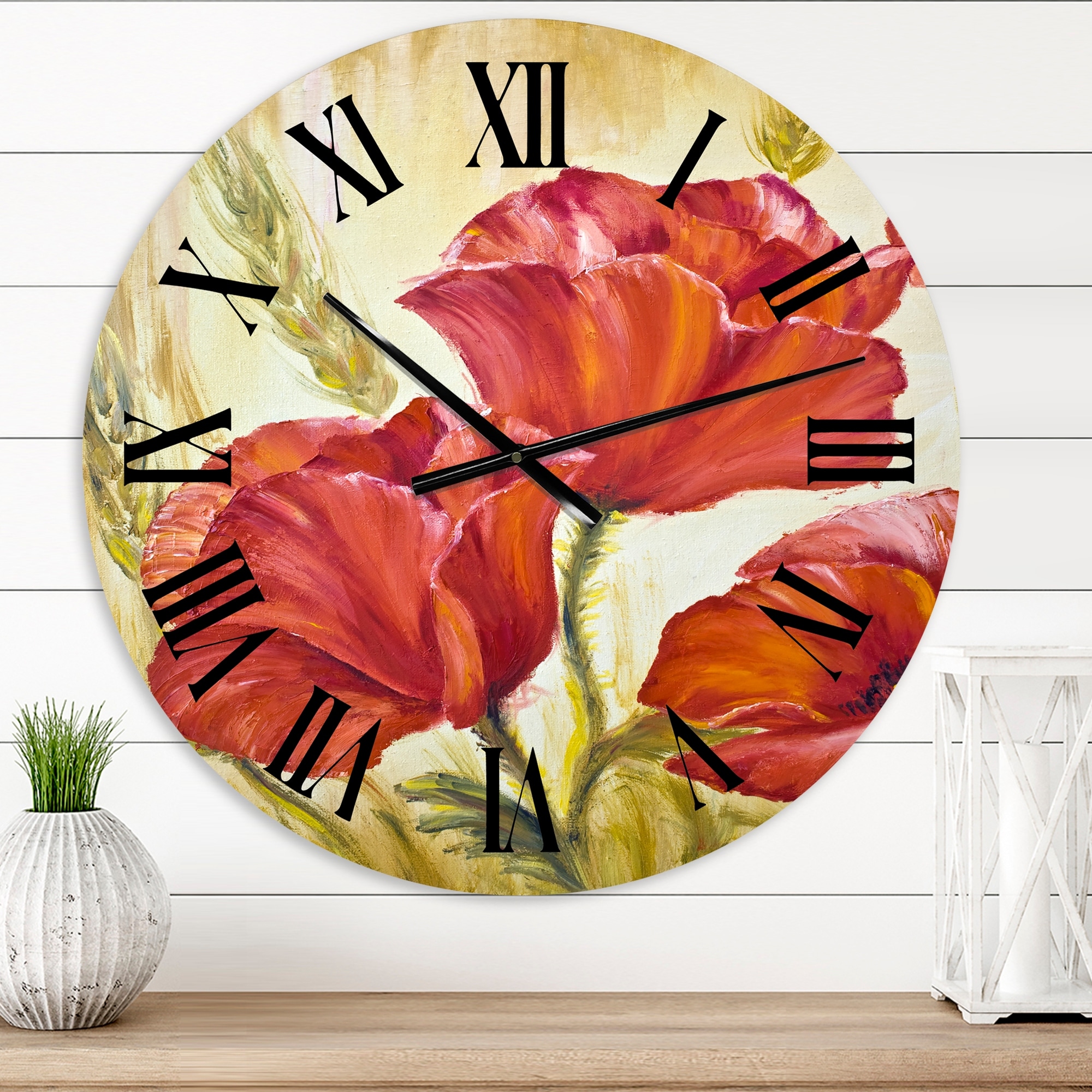 Designart 'Blossoming Poppies in Wheat Fields II' Traditional wall clock