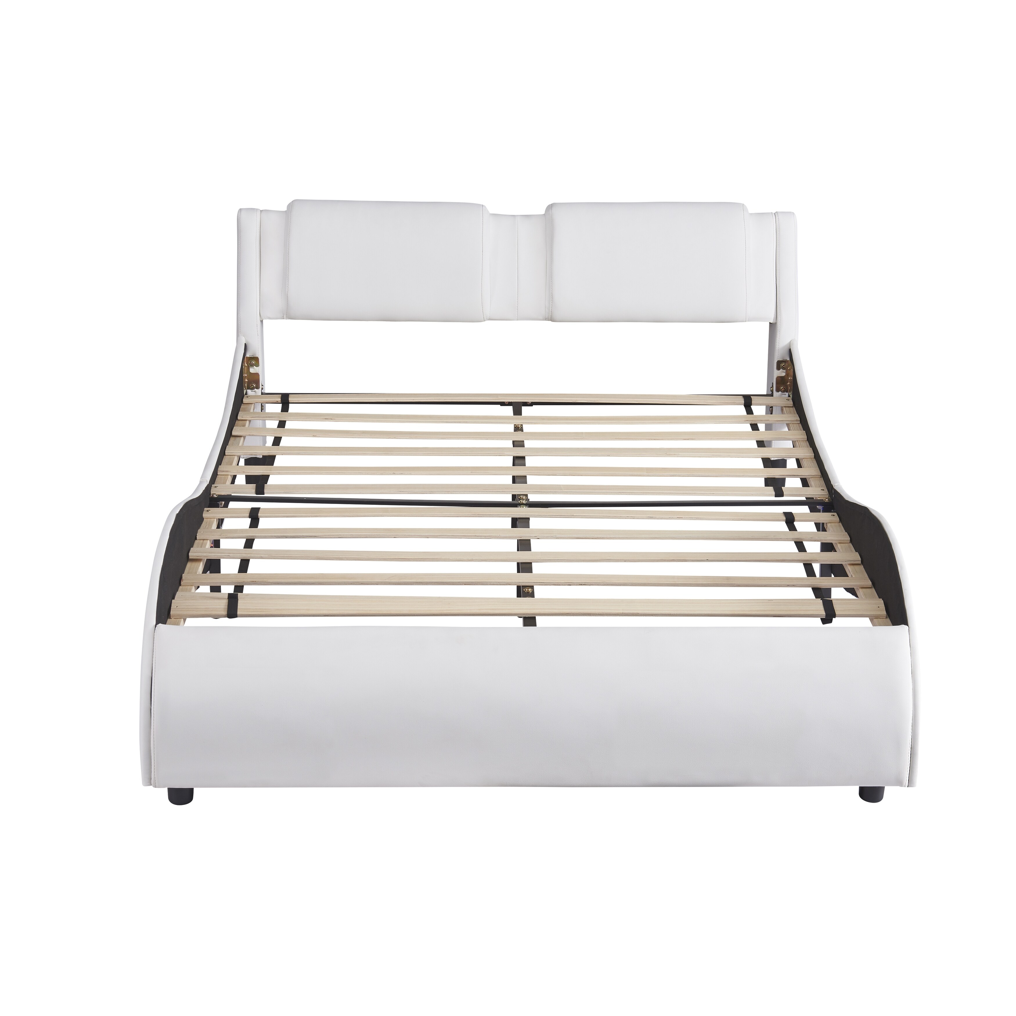 White Full Size Upholstered Faux Leather Platform Bed with LED Light Bed Frame with Slatted