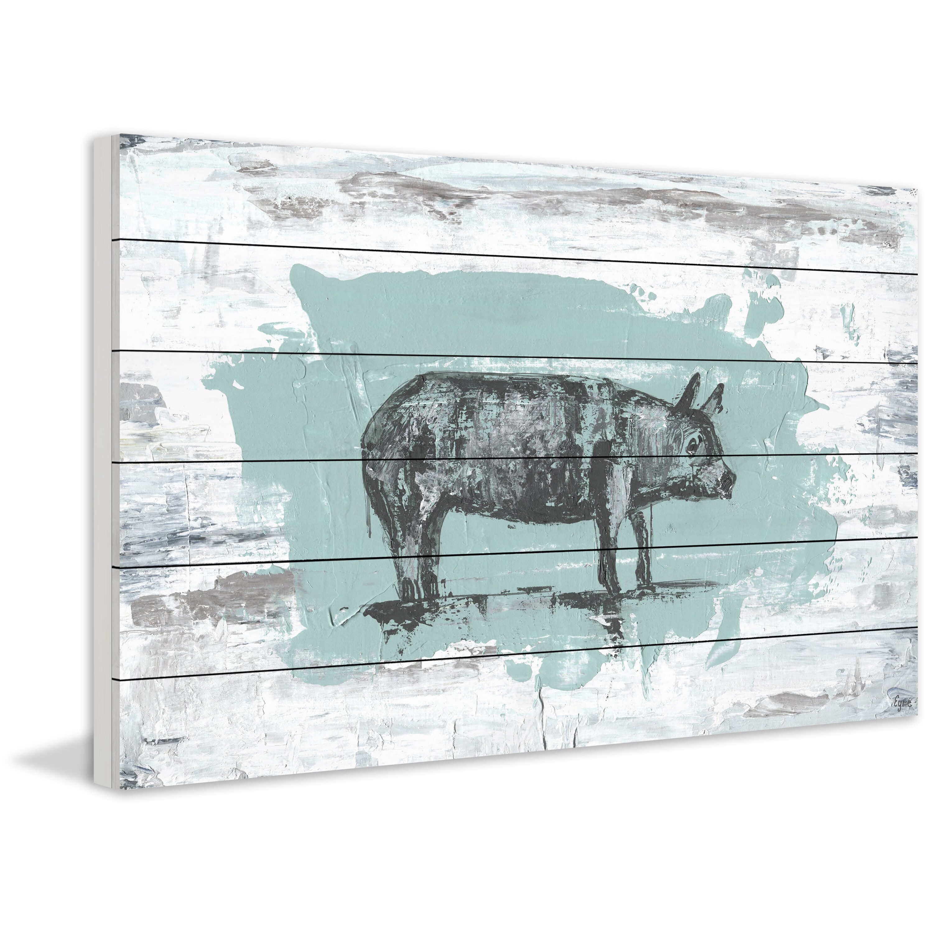 Marmont Hill - Handmade Pig in Green Painting Print on White Wood