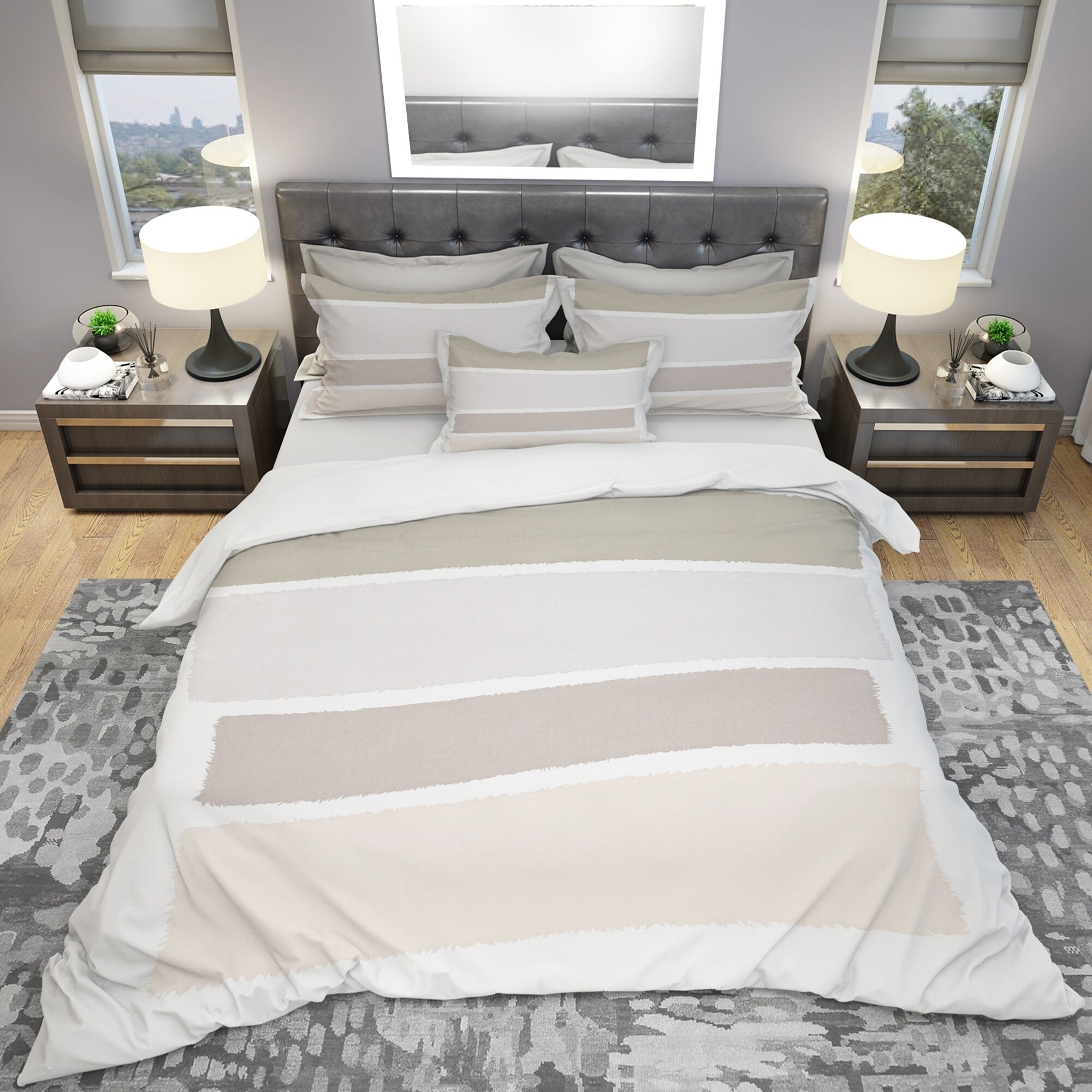Designart 'Painted Weaving I Neutral on White Sq' Geometric Bedding Set - Duvet Cover & Shams