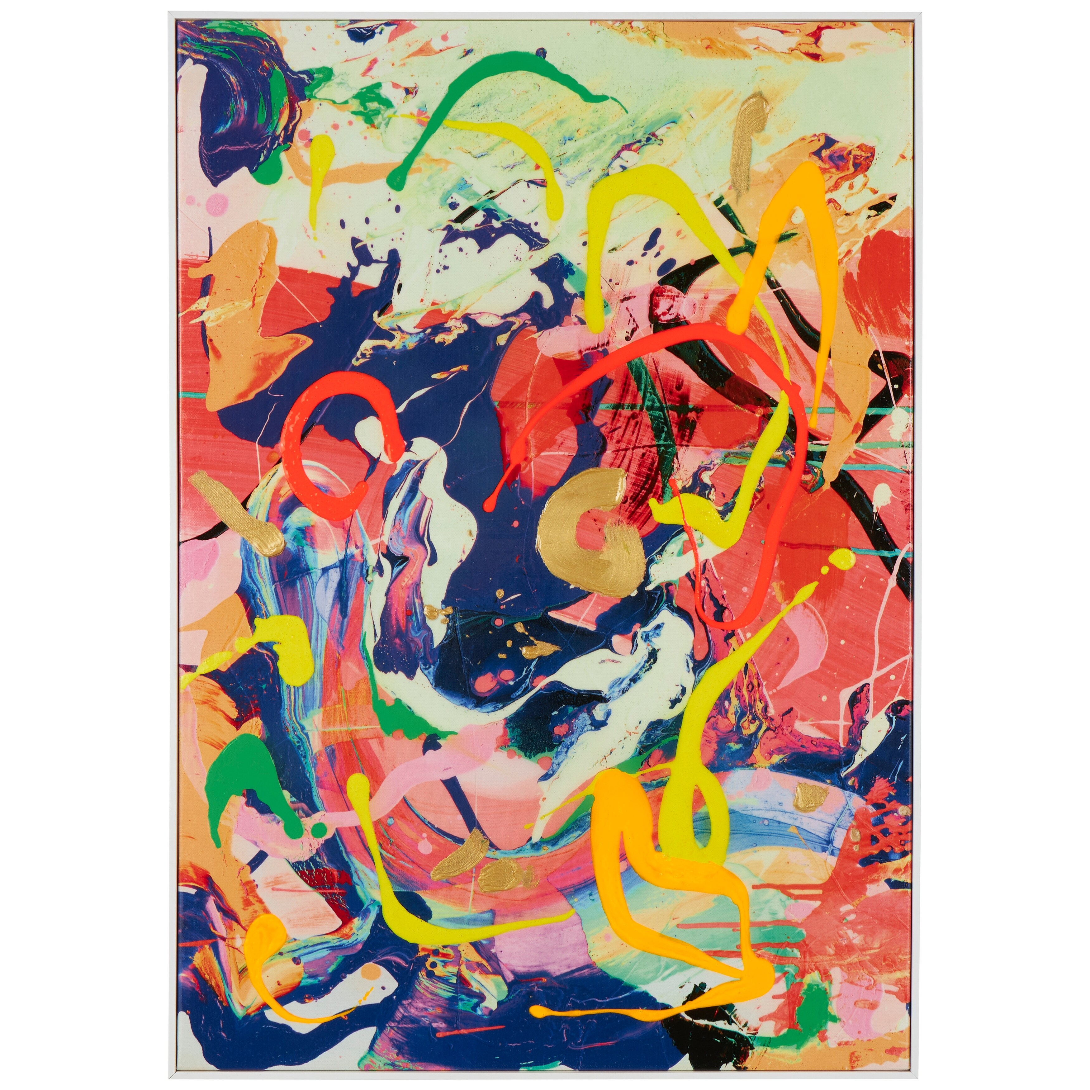 Multi Colored Canvas Paint Splatter Abstract Wall Art with White Frame