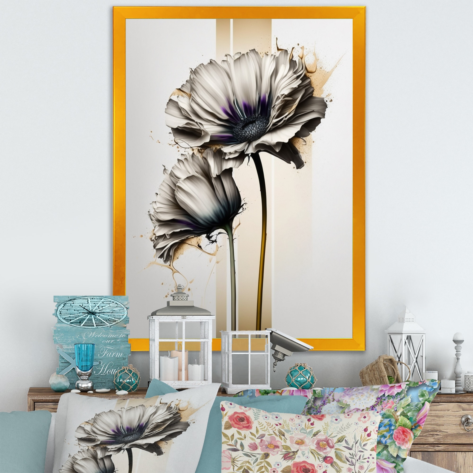 Designart "White Gerbera Flower on Golden Beige Paint I" Floral & Botanical Framed Art Print
