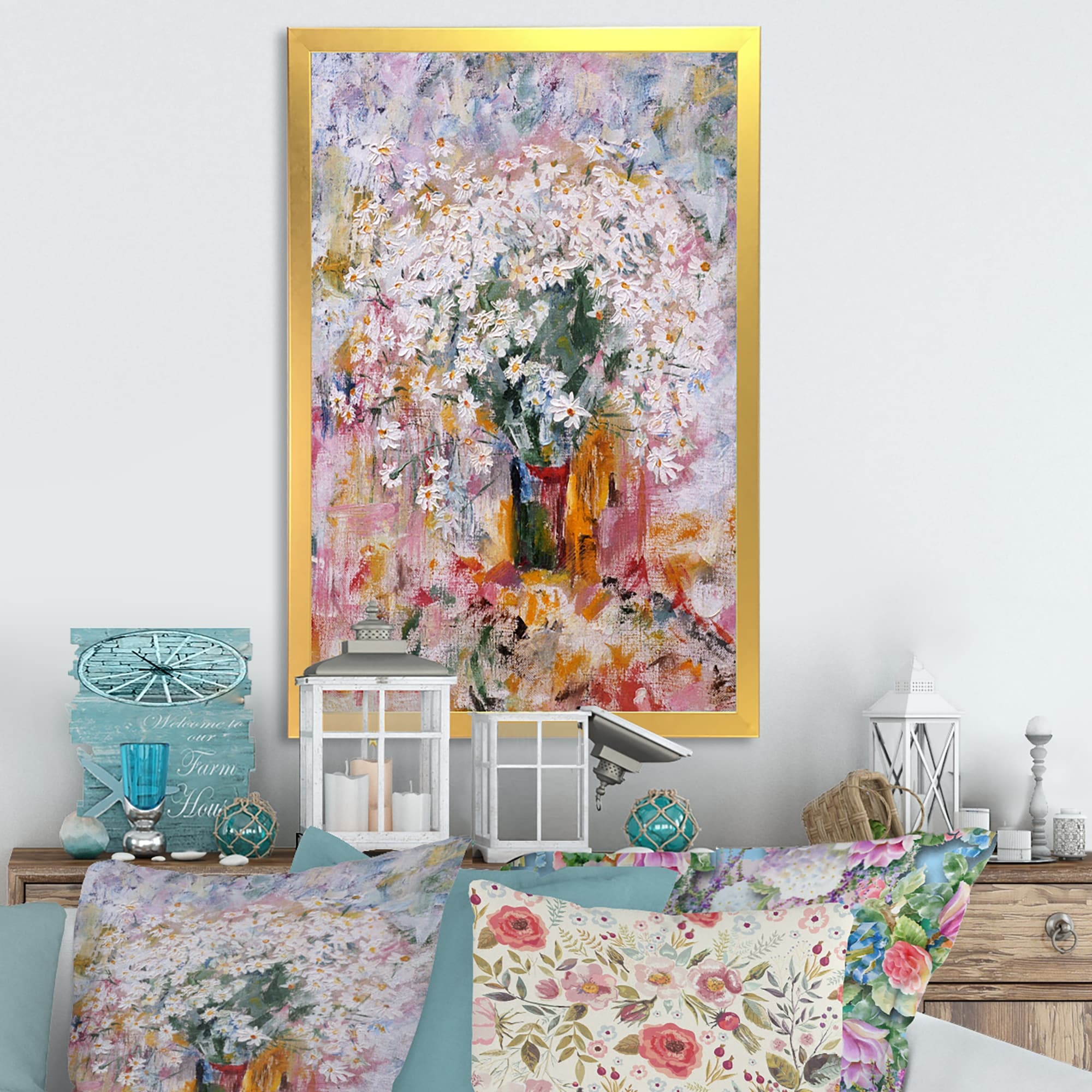Designart "Painting A Bouquet of White Flowers" Farmhouse Framed artwork