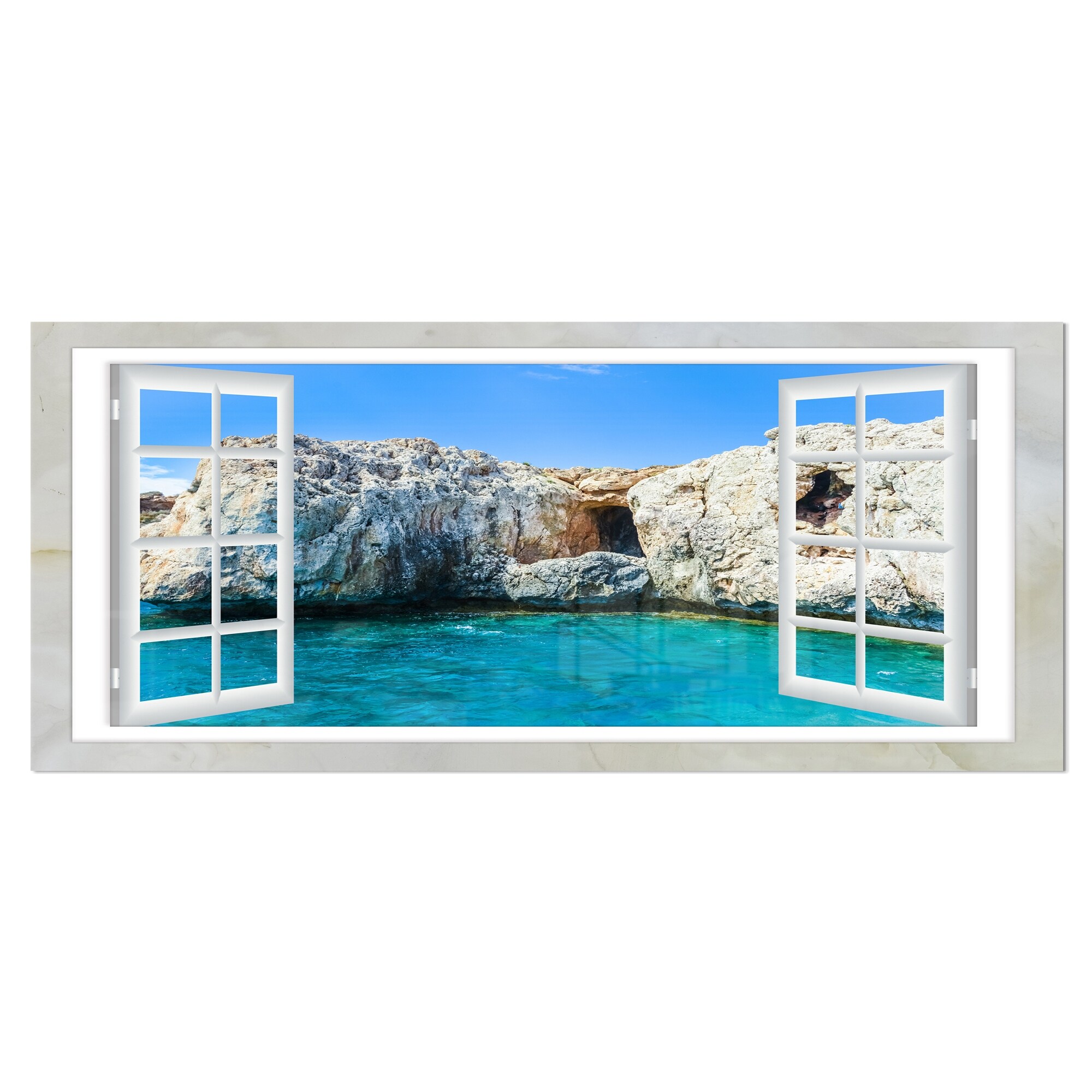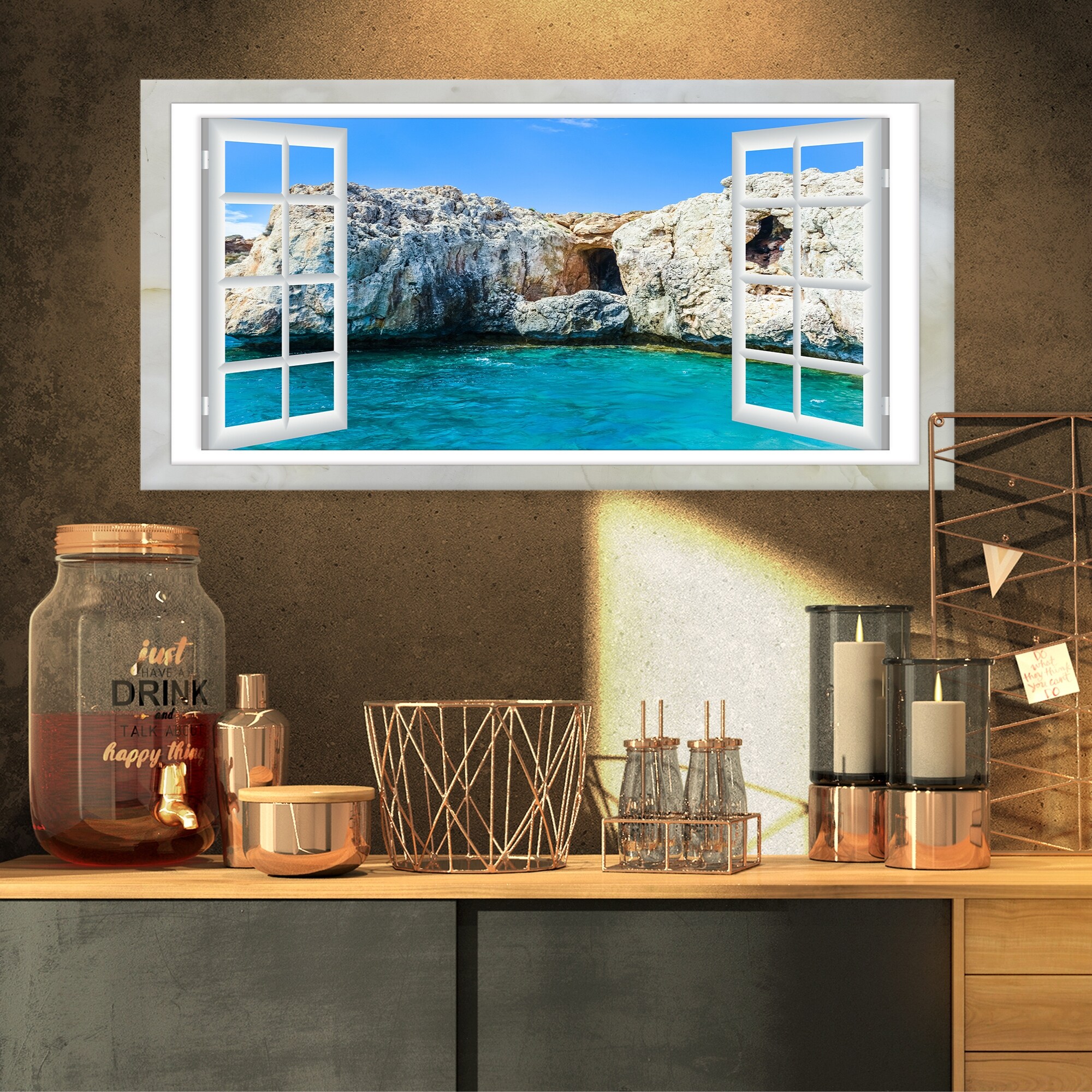 Designart "Open Window to Rocky Sunny Ocean" Extra Large Seashore Canvas Art