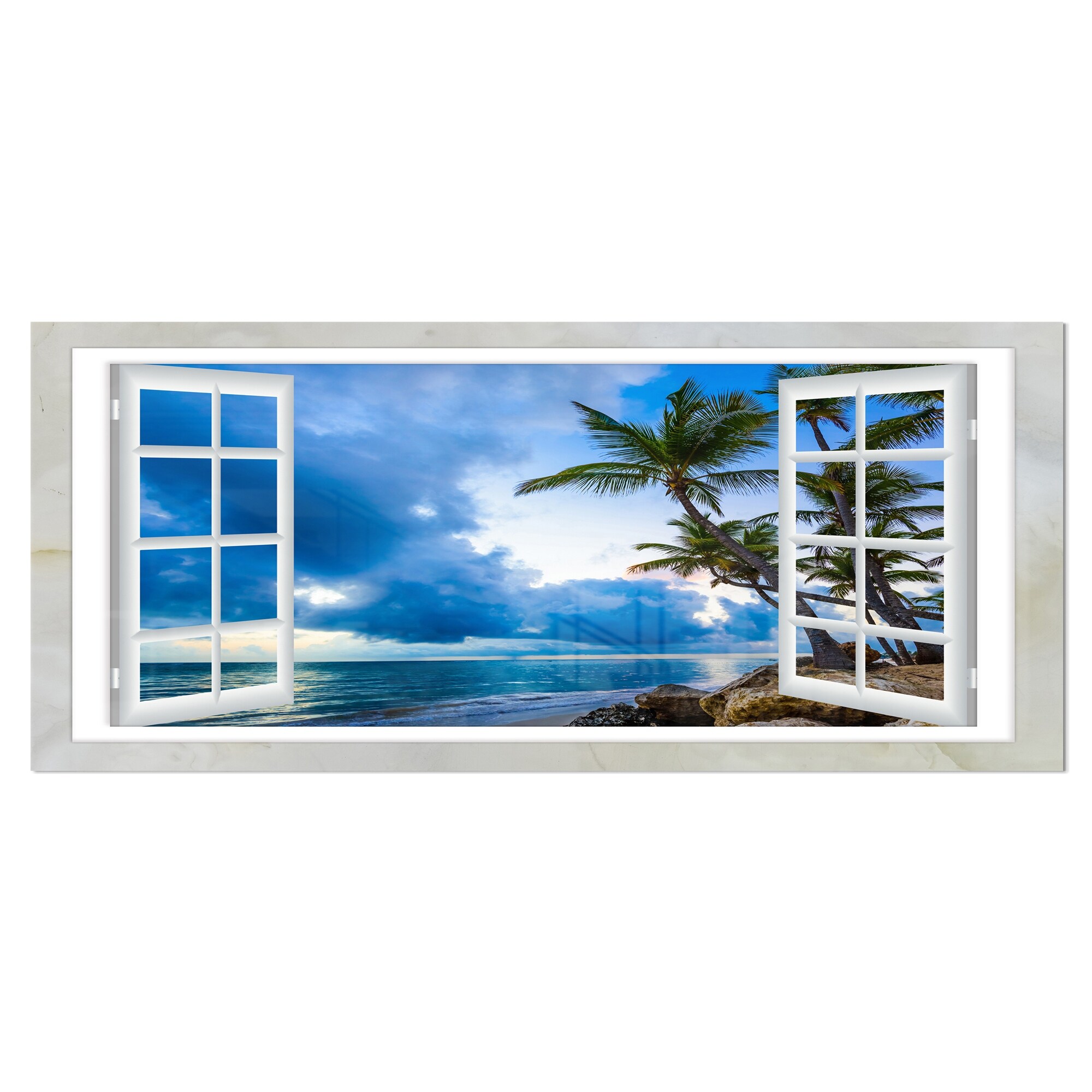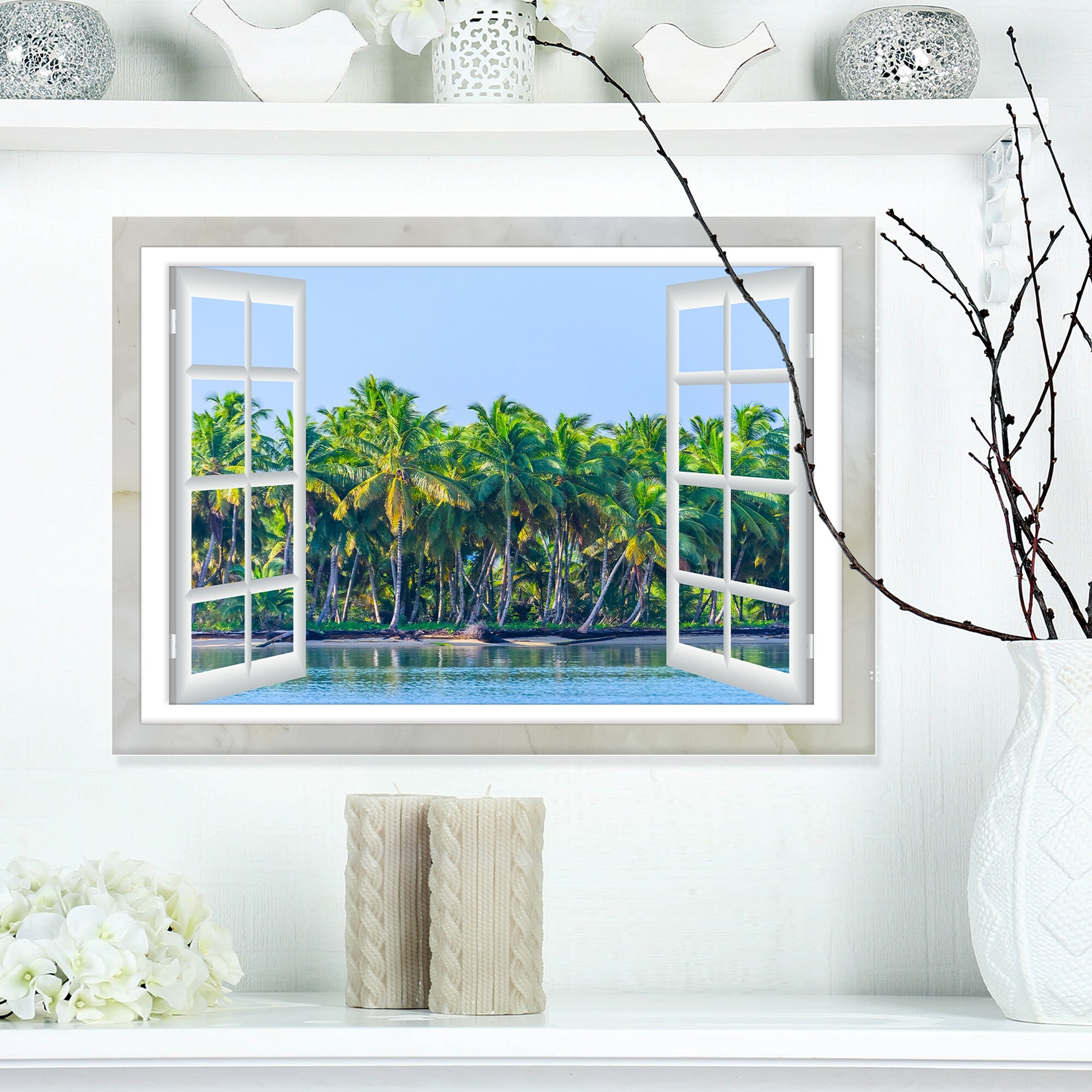 Open Window to Seashore Palms - Extra Large Seashore Glossy Metal Wall Art