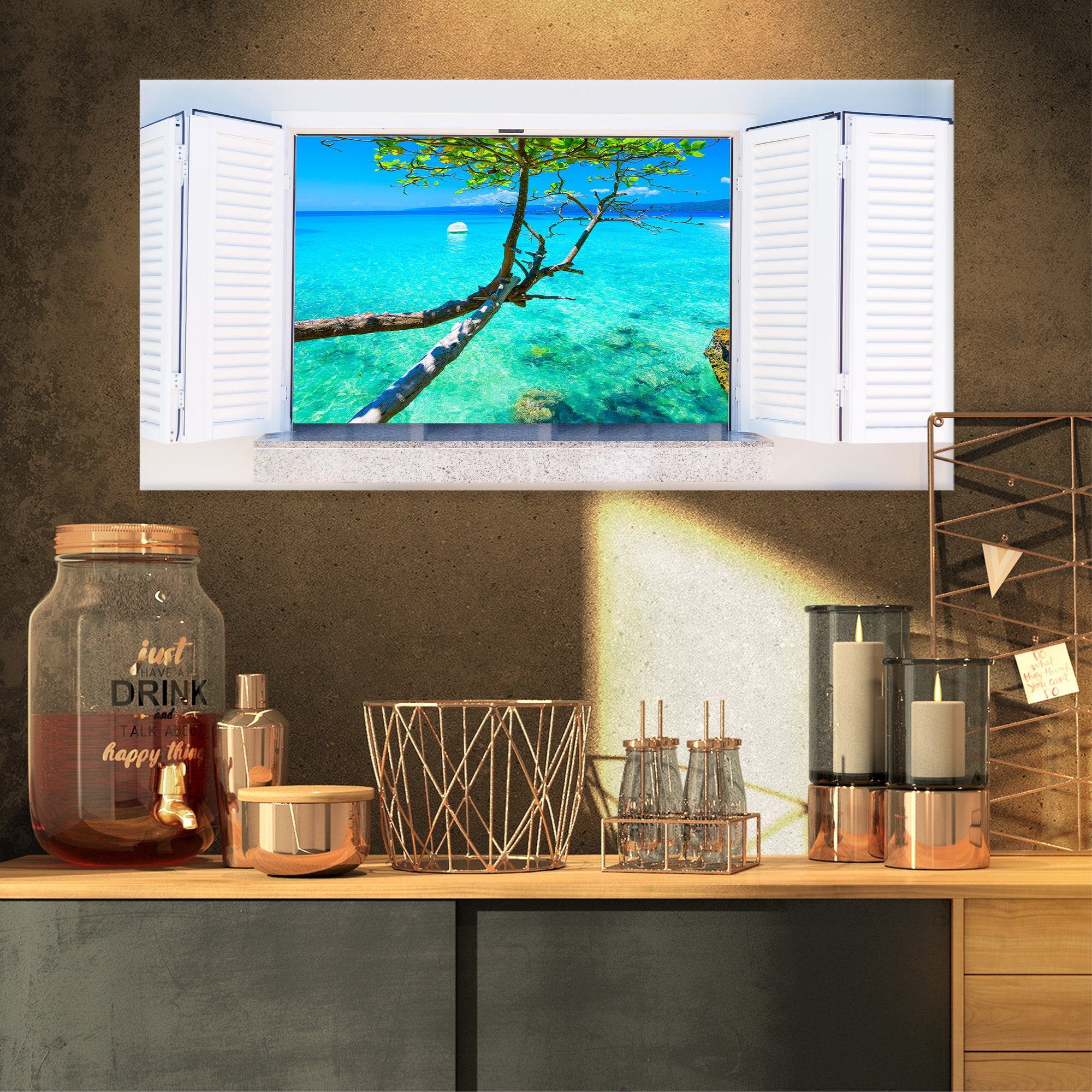 Designart "Open Window to Gorgeous Seashore" Modern Seascape Canvas Artwork
