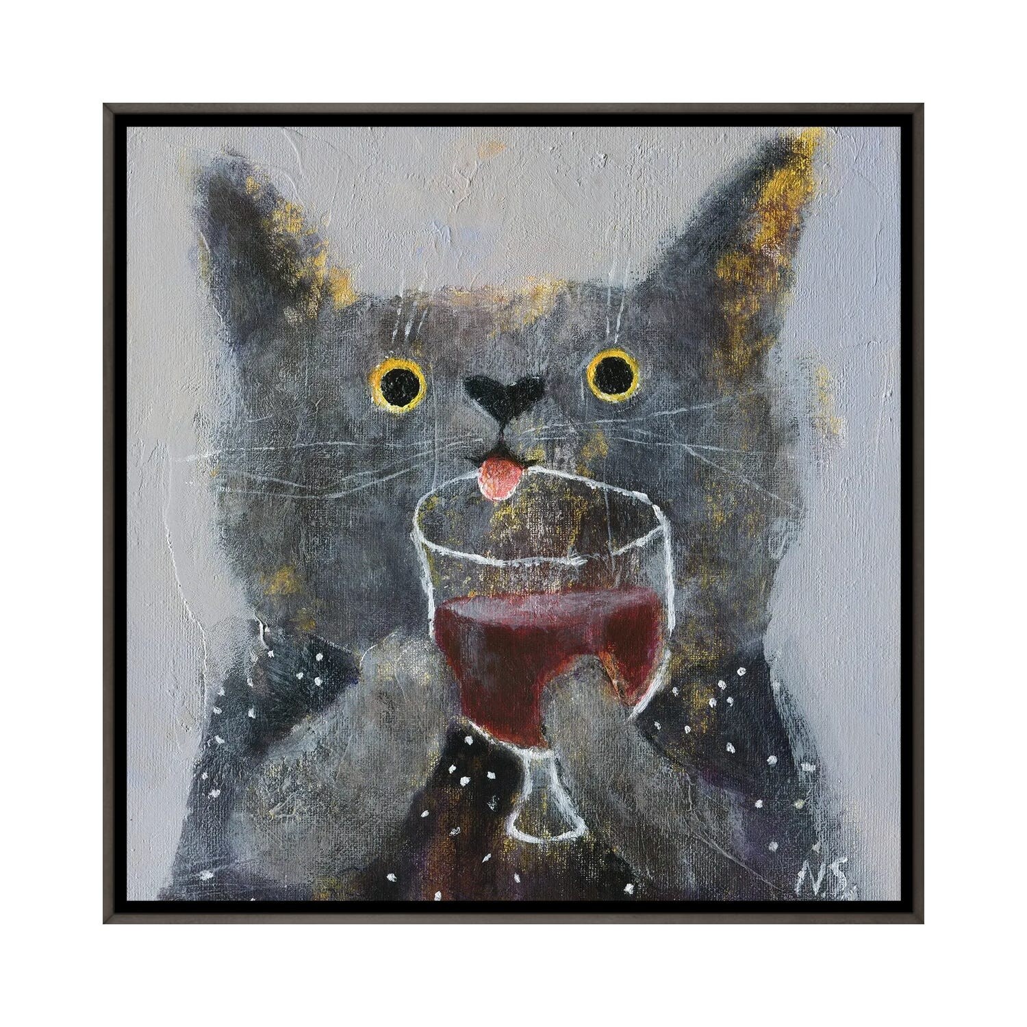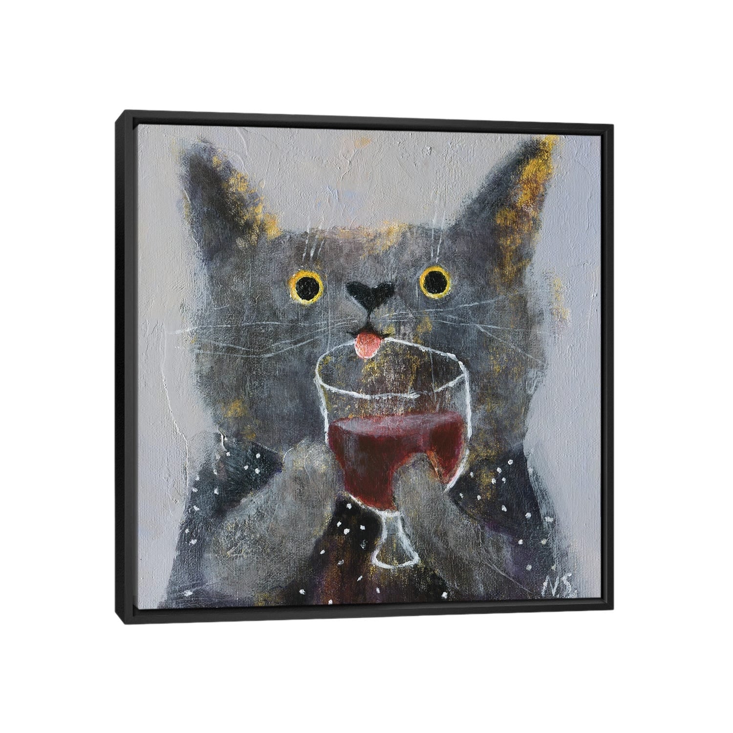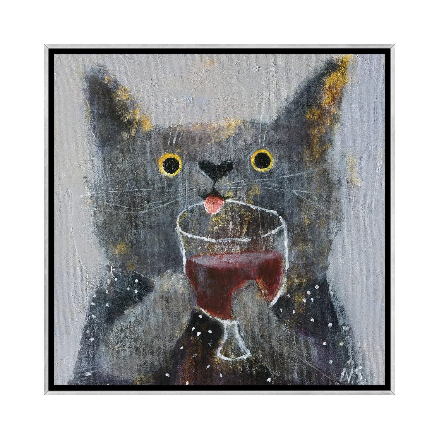 iCanvas "The Cat With Glass of Wine" by Natalia Shaloshvili Framed