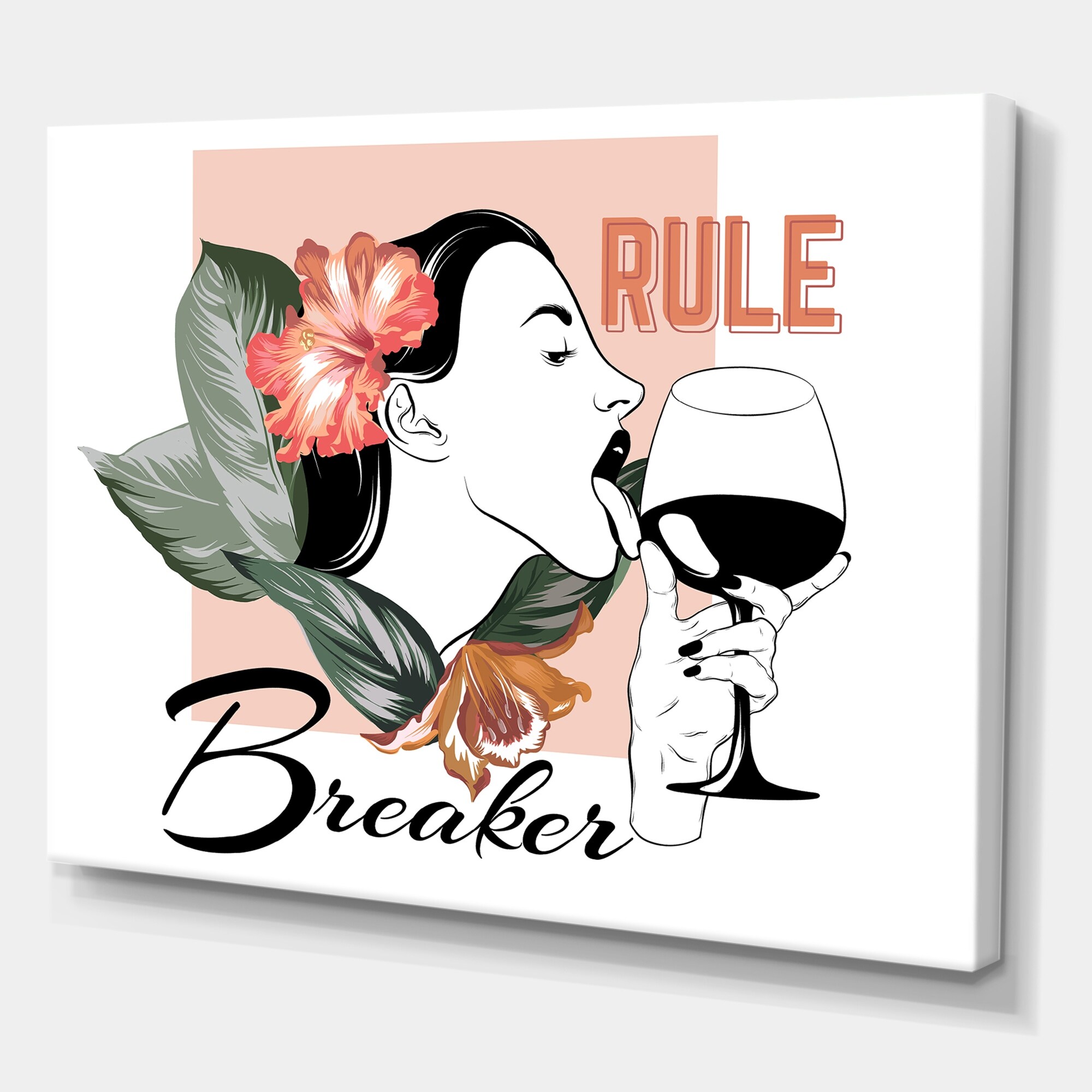 Designart "Rule Breaker Suggestive Girl With Glass of Wine And Flowers" Modern Canvas Wall Art Print