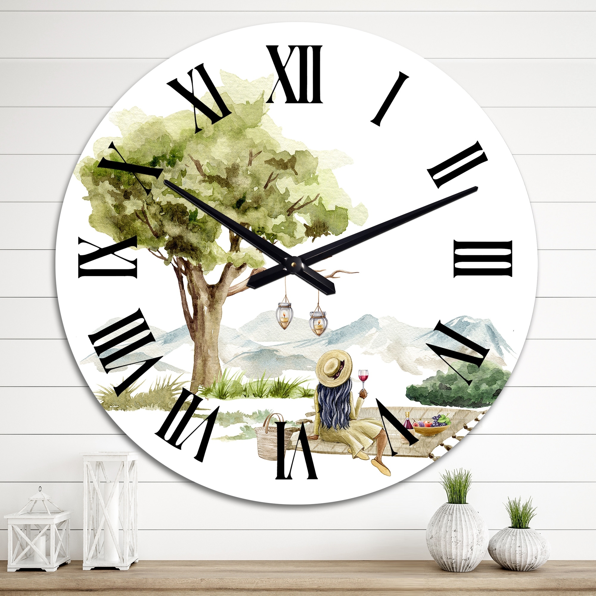 Designart 'Young Girl Sitting With A Glass of Wine Under Tree' Country wall clock